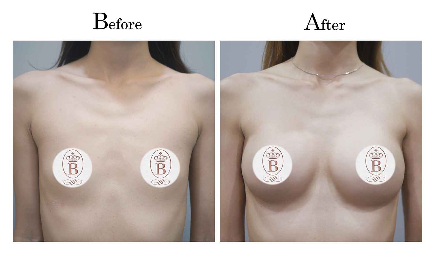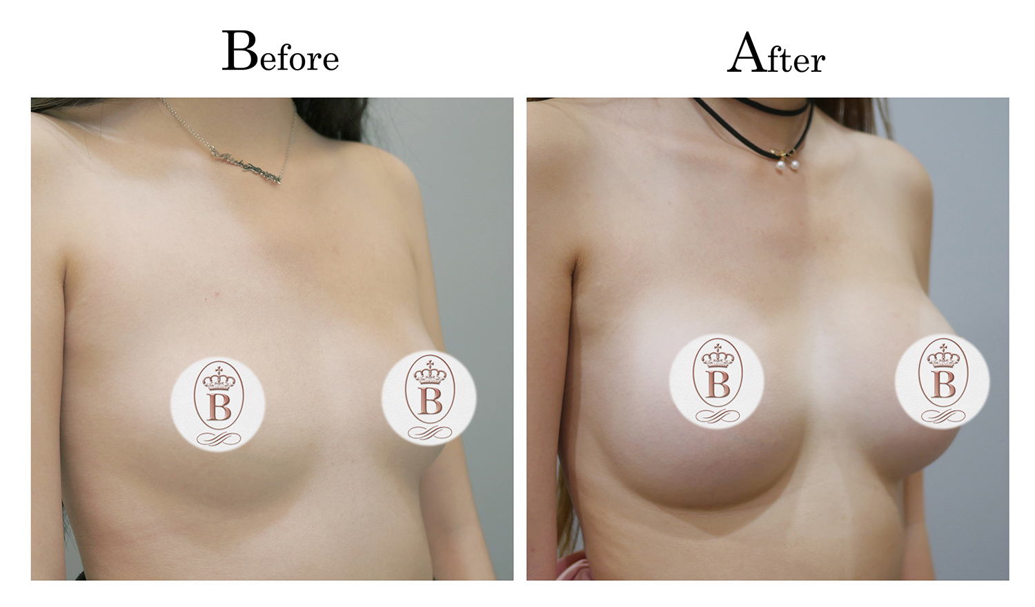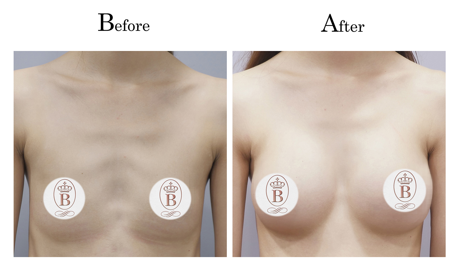 此案例本身條件屬於A罩杯,病患一直夢想希望到E罩杯,但又不希望感覺太OVER,另外也不想要術後一直按摩,因此選擇屬於比較自然術後也不需按摩的水滴型果凍矽膠隆乳,此次手術從腋下植入,因此從外觀看不到傷口,腋下的切口癒合後藏在皺褶中,也不容易看出。