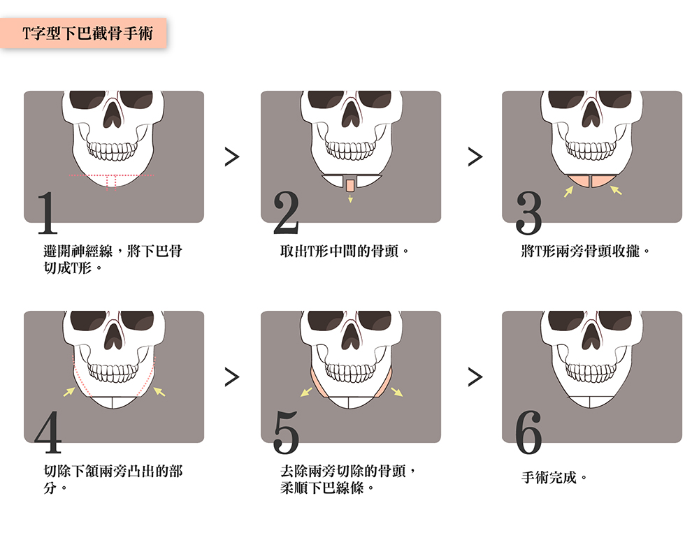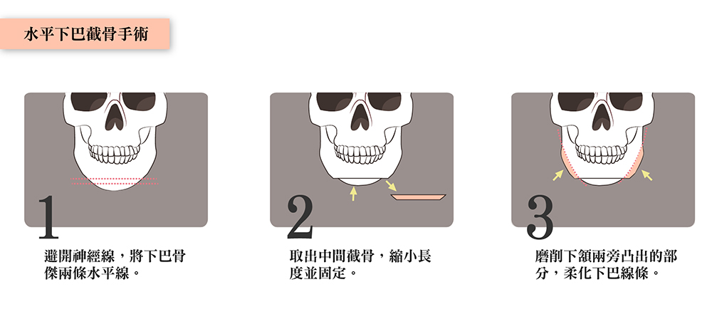其中下巴截骨手術方式可分為「T字型下巴截骨術」與「水平下巴截骨術」兩種: