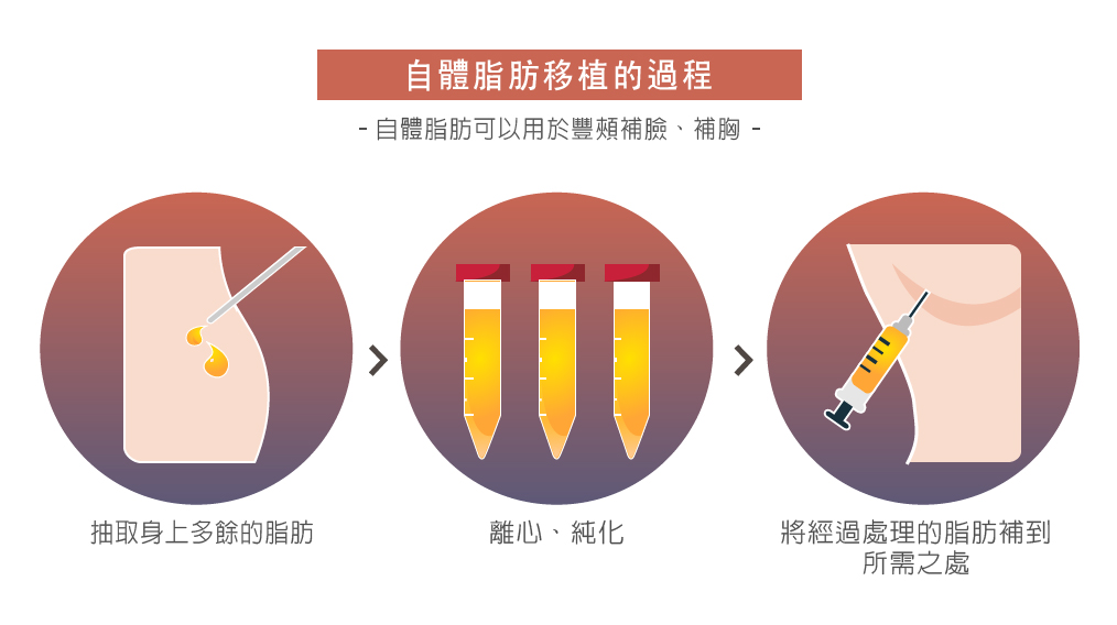 抽取脂肪→將脂肪純化→進行脂肪移植