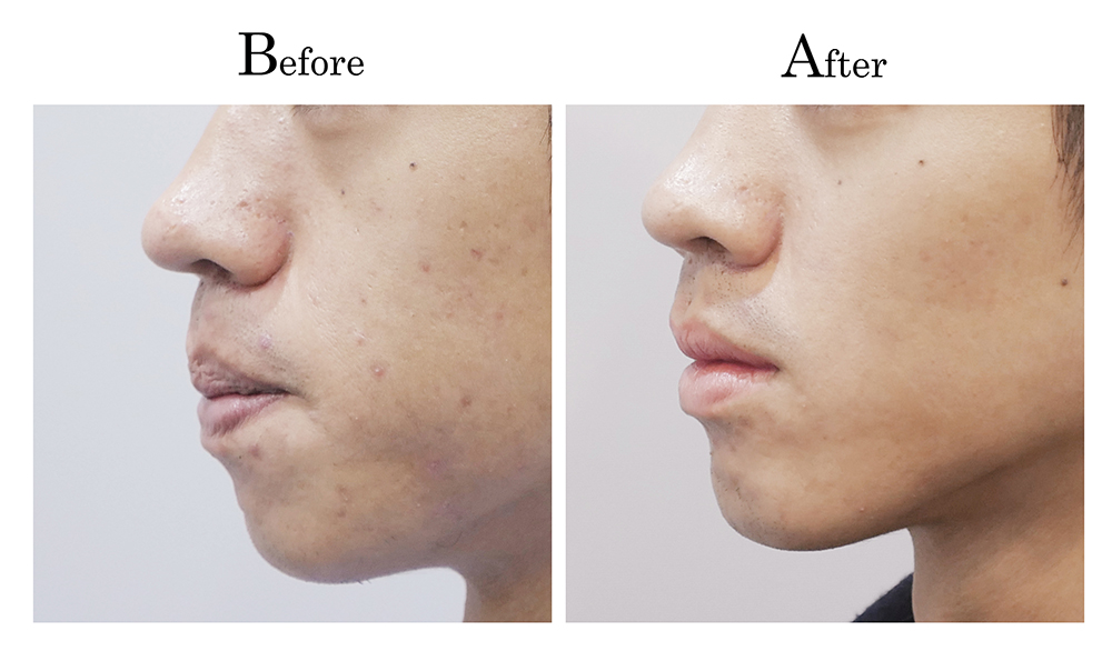 建議有這類困擾的患者先墊下巴改善閉唇問題,同時也能改善下巴後縮與修飾輪廓外觀,更能改善嘴唇外翻的狀況。
