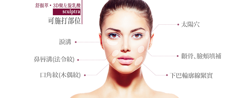 可用來填補太陽穴、法令紋與木偶紋,也可用來改善鬆弛的雙頰與拉提下顎線條。