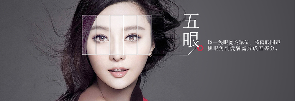 臉部講求面貌的和諧與否,在於五官比例的組合,在亞洲對於面部輪廓框架上有符合「三庭五眼」的說法,所謂的三庭五眼講的是臉部輪廓與五官的長寬標準比例,我們可以藉此判定自身面容所需加強、改善之處,醫學美容整形手術上也多是以此做為參考依據。