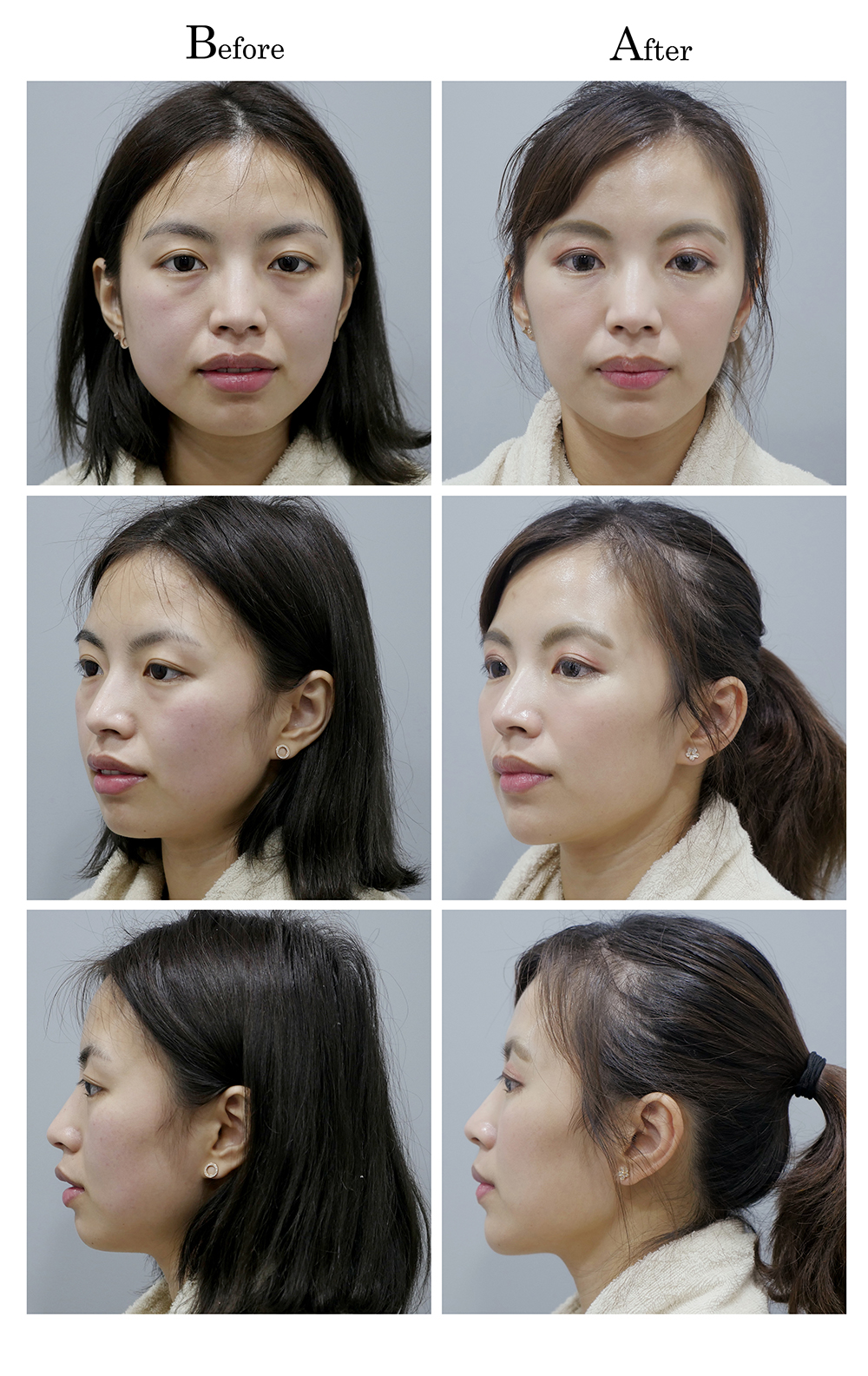 首先是臉型,可以利用微整形玻尿酸注射將圓短的下巴做延伸,並利用肉毒桿菌注射咀嚼肌處,不僅能改善圓臉的窘況,又能改善原本不和諧的比例不均。