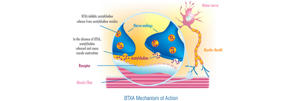 肉毒桿菌是能阻斷神經傳導的蛋白質,因此可以利用注射來阻斷表情肌肉神經的傳導,讓過度緊繃的肌肉放鬆,除了改善動態紋也能改善咀嚼肌發達導致的國字臉還有小腿發肉過度發達的蘿蔔腿。其次便是利用玻尿酸填充塑形下巴,將之拉出延伸。