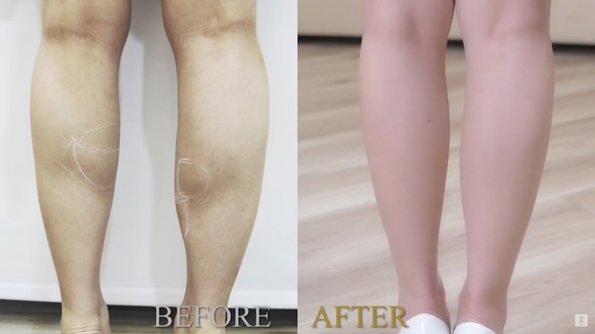 原本因為常穿高跟鞋,鍛鍊出來發達的兩球小腿肌,站立的時候就鼓起兩包在那裏。那現在打完肉毒之後,醫師有在肌肉的上下施打做修飾,使得腿部線條是比較柔順的,不會像田徑選手那樣雙腿有發達的小腿肌在那邊,打完之後小腿的線條變的比較好看,雙腿看起來也比較纖細修長。
