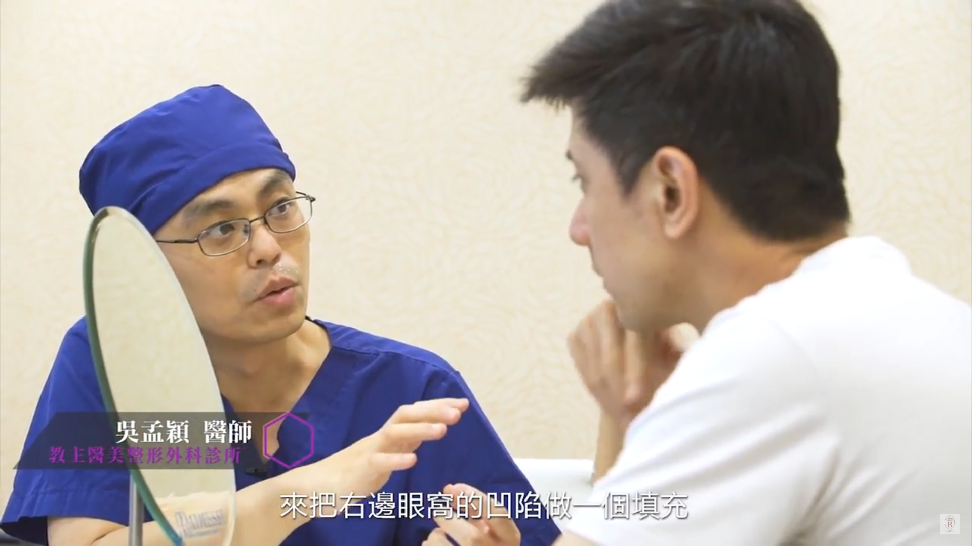 首先是眼皮的垂墜,眼皮稍稍的下垂讓人看起來沒有精神,吳孟穎醫師建議可以拿自體脂肪將右眼窩的凹陷做一填補,用以拉提眉眼。