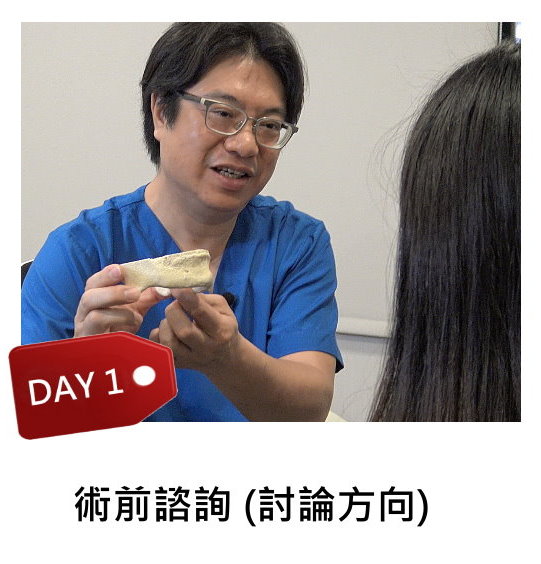 拿到製作完成的下顎骨3D列印模型後,廠商會與醫師溝通製作出3D下巴模型樣品3-5種(此模型非直接植入隻模型,只是樣品供病患核對與醫師溝通),待3D下巴模型樣品製作完成【需一天時間】,便可約病患視訊諮詢與醫師討論最後確認要植入的下巴模型使哪一種,選定後即可安排手術時間。