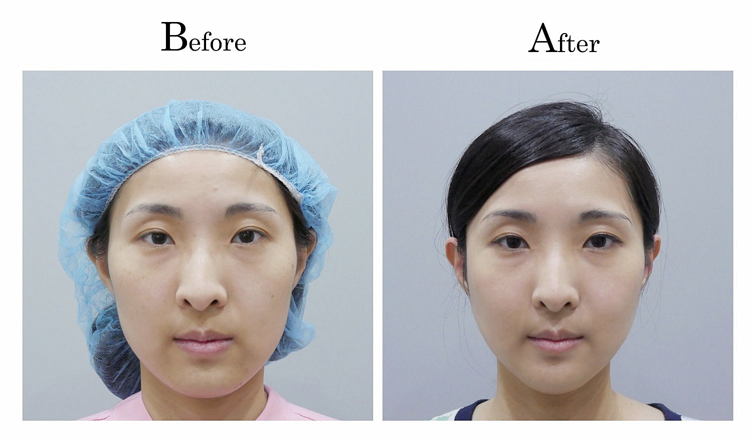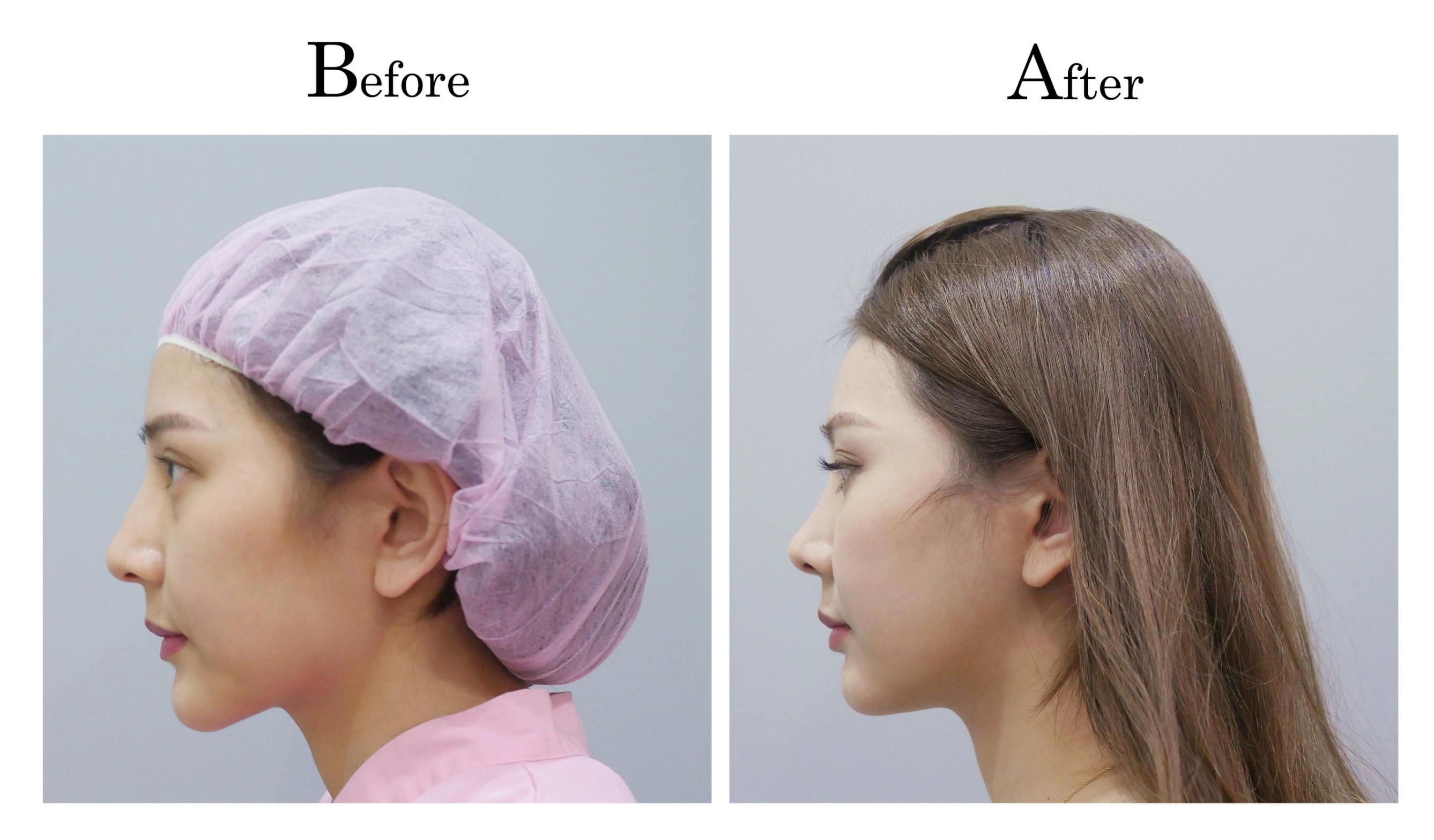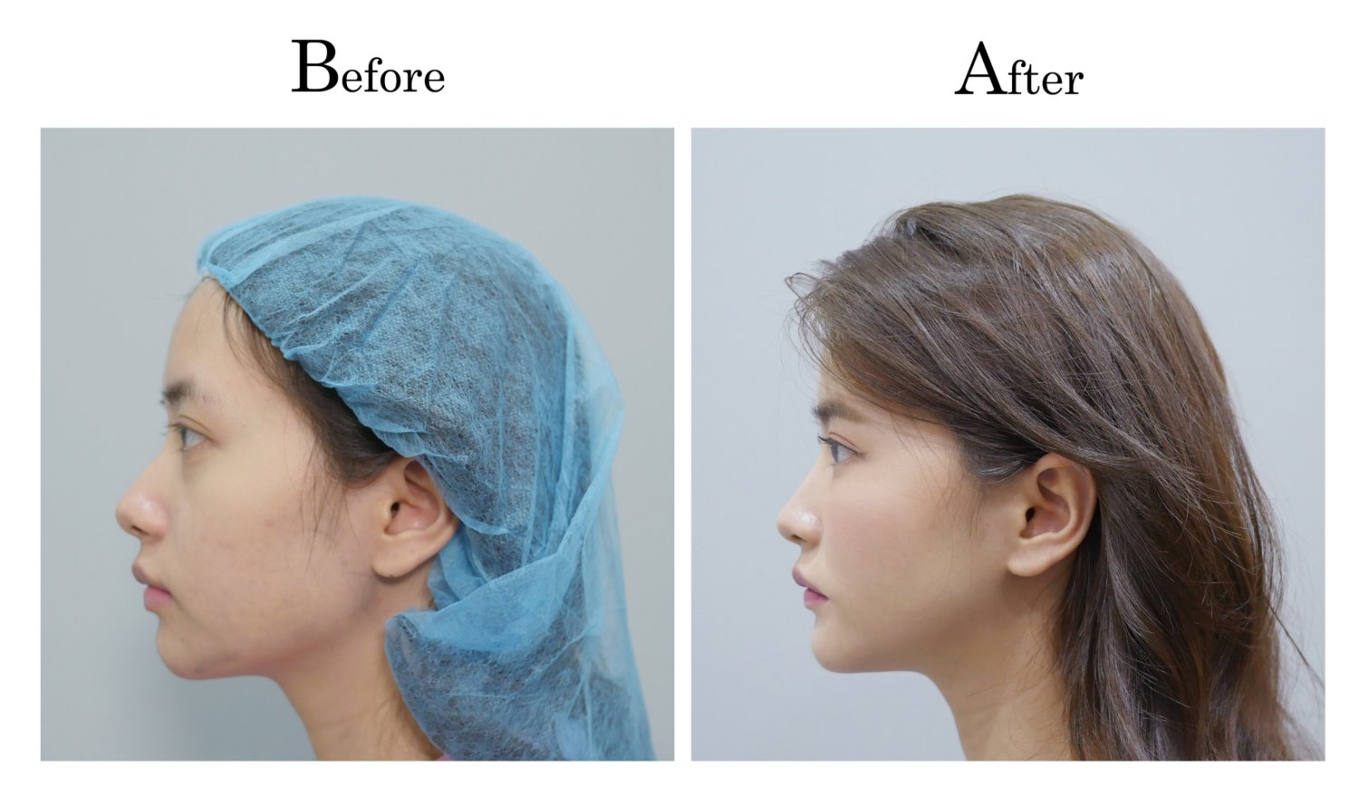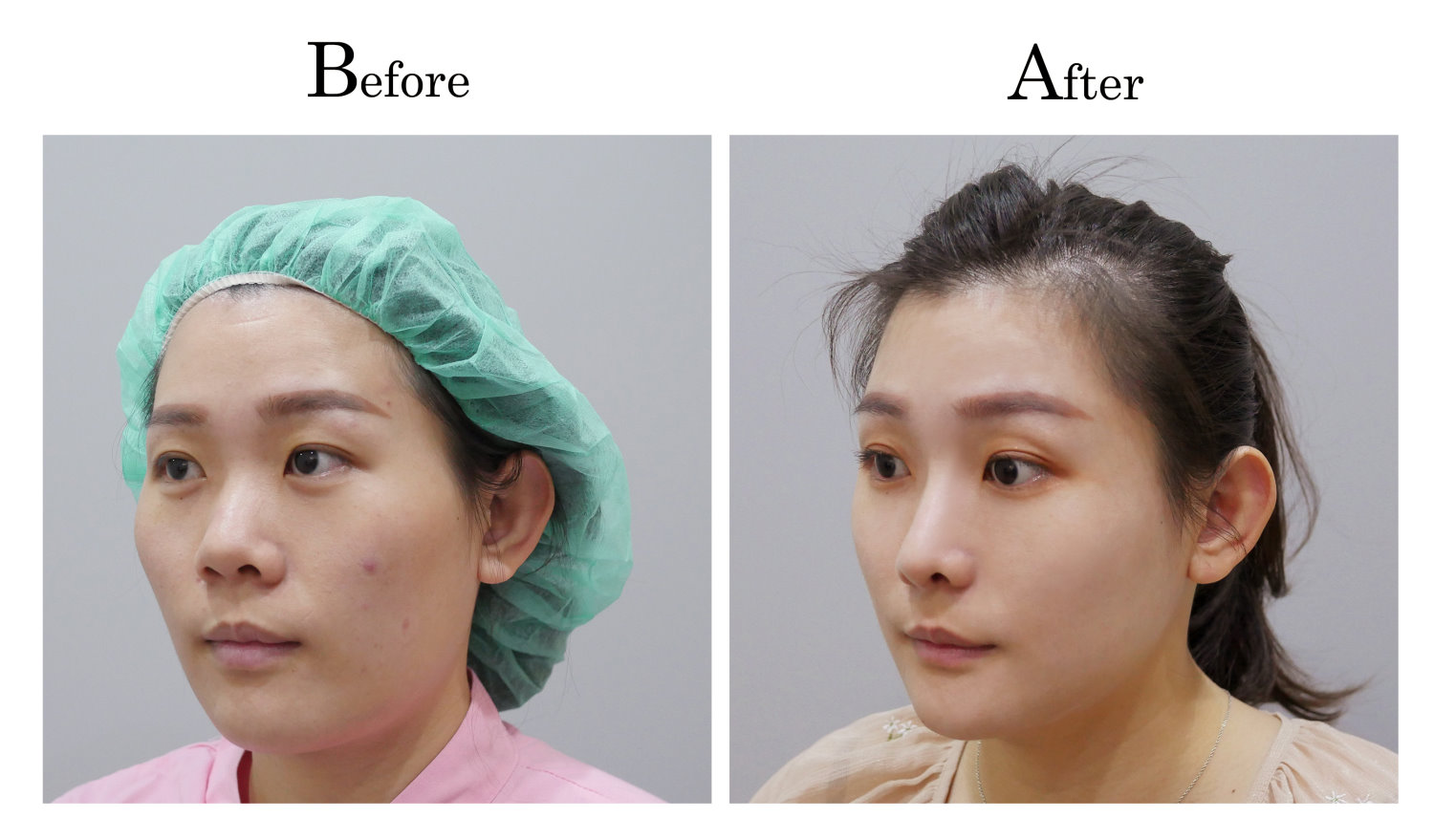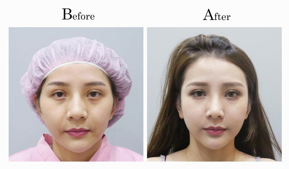 此案例術前臉型較為粗曠陽剛,從正面來看,首先需要將臉部輪廓順修,手術方式為進行顴骨和下顎骨角手術,再來須將臉部比例加長,手術方式為GoreTex墊下巴手術,術後感覺臉部輪廓變得更為柔順,整體五官也變得更為立體精緻。