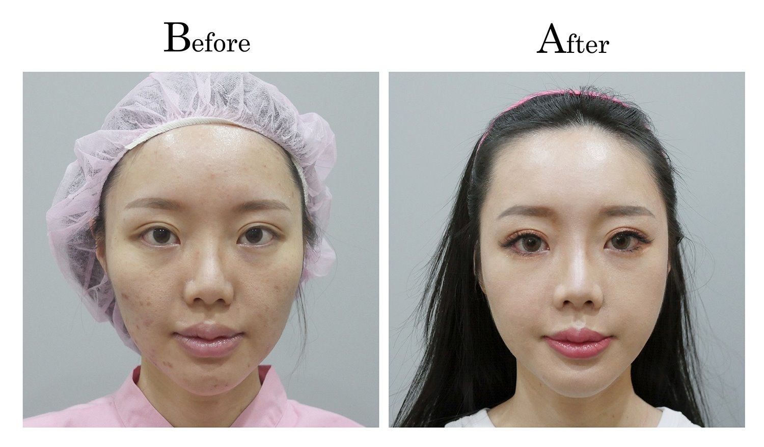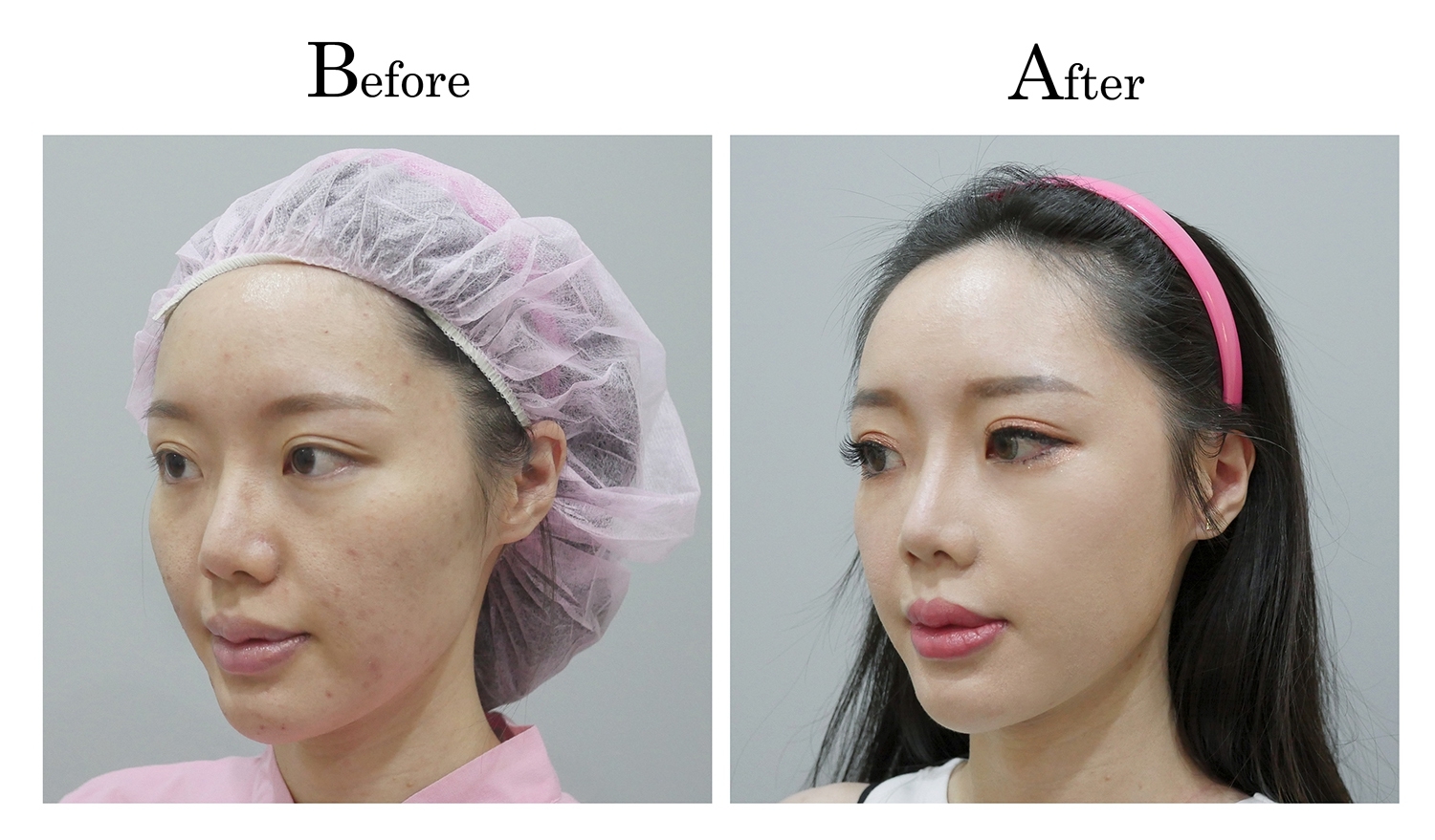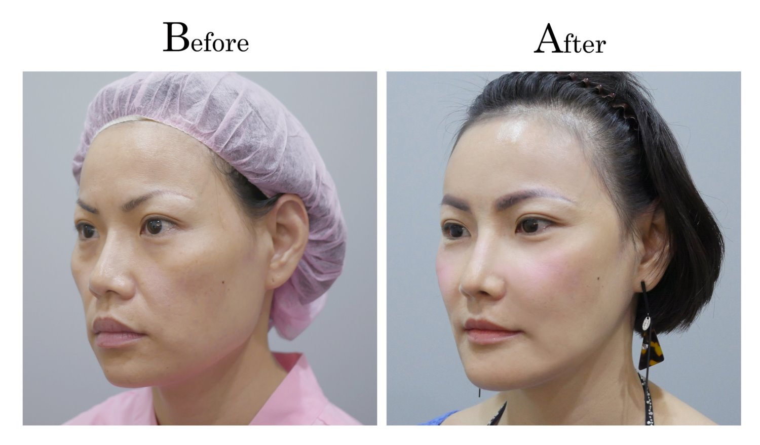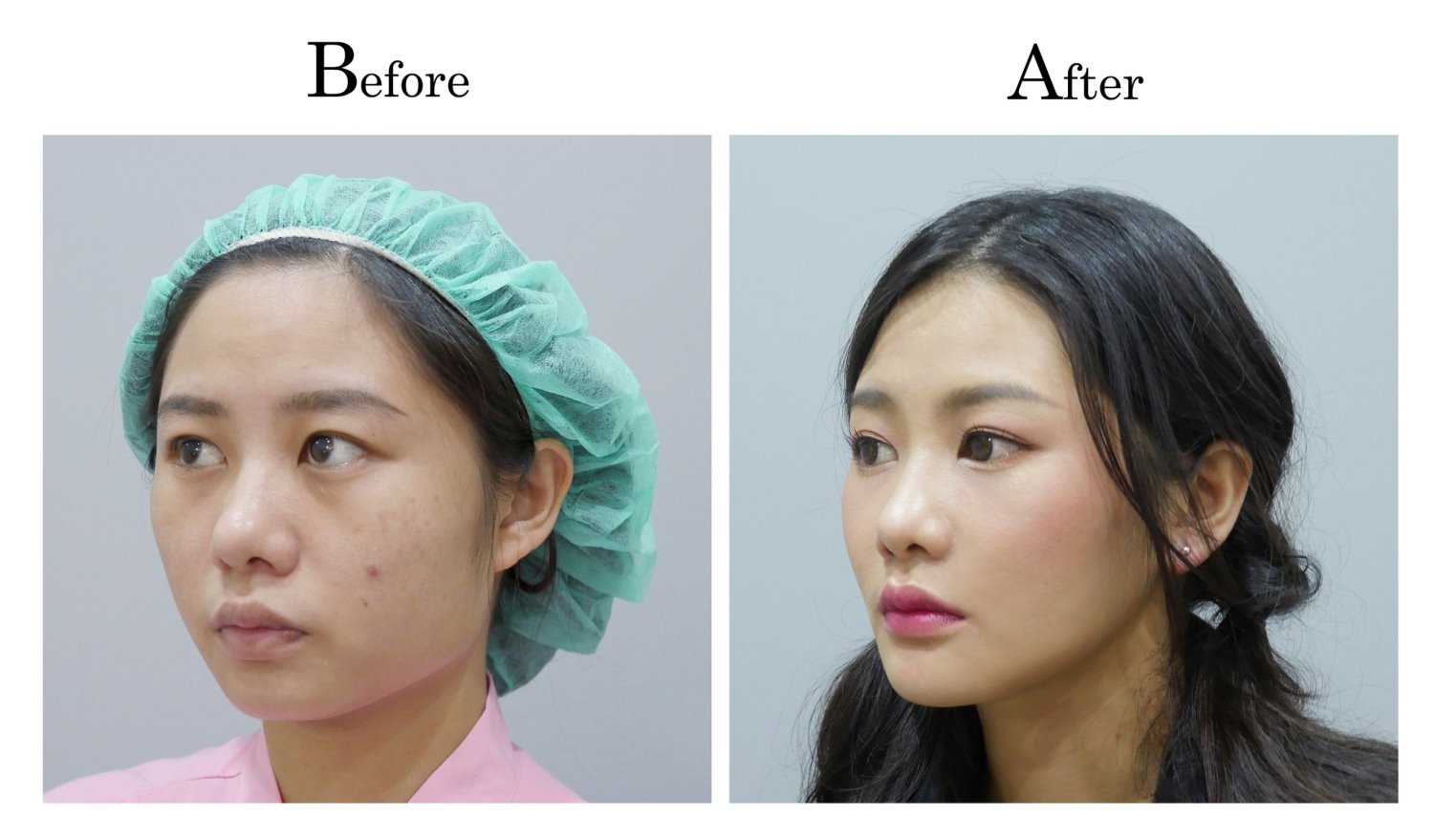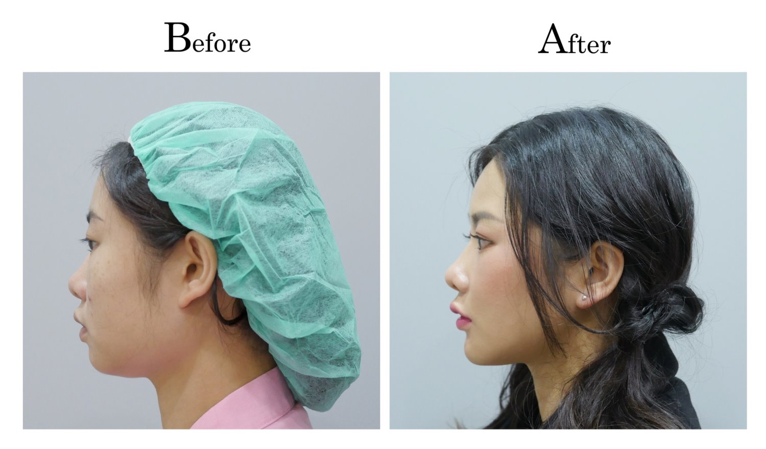此案例術前臉型較為粗曠陽剛,從正面來看,首先需要將臉部輪廓順修,手術方式為進行顴骨和下顎骨角手術,再來須將臉部比例加長,手術方式為GoreTex墊下巴手術,術後感覺臉部輪廓變得更為柔順,整體五官也變得更為立體精緻。
