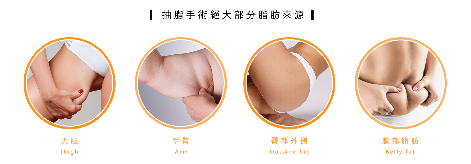 適合抽脂的部位:脂肪量多面積較大的部位,例如:腹部、大腿、臀部及手臂(蝴蝶袖)