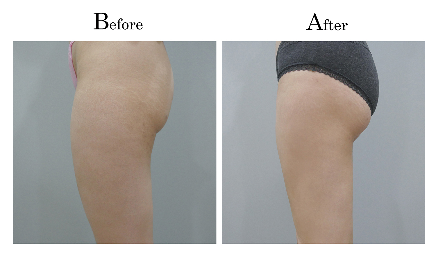 上半身看起來很瘦,但是下半身卻很胖的咩,側腰馬鞍下臀的脂肪嚴重過度堆積,因此比例上落差非常大,每次站起來都會被人家笑,「ㄟ,原來你是那麼胖」是她最常聽到的一句話,因此下定決心要解決這個困擾,求助許多整形診所,很多診所都覺得會造成下垂而拒絕幫她做手術,透過林仲樵醫師顯微套管手術合併超能電漿縮皮手術後,咩只有一句心得:早就應該來做了!