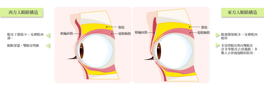 東方女性大多是內雙或是雙眼皮,甚至眼頭有著蒙古摺,讓人感覺眼皮厚重沒精神,並且為此苦惱,羨慕西方人那雙炯炯有神的眼睛。