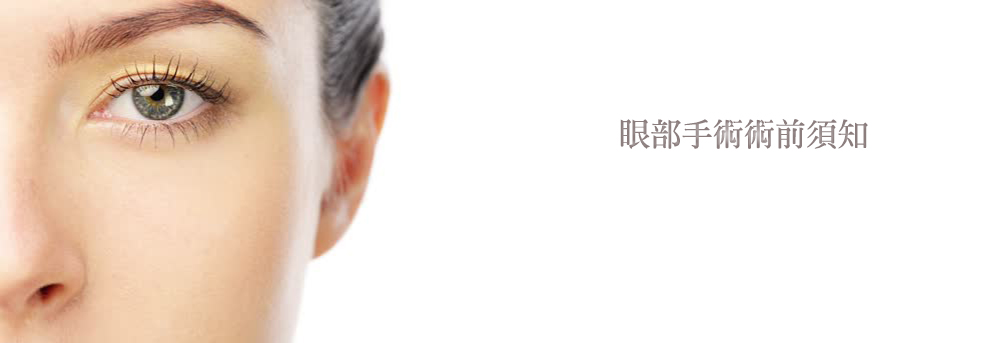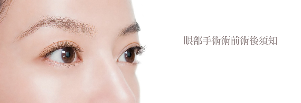 所謂的眼部美容是讓原本就正常而健康的眼睛,經由人工的方式,弄得更美觀;而眼部整形除了包括眼部美容的部分,還加上因受傷、先天缺陷所造成不同程度的眼部變形的矯正。在此為有意施作眼部手術的人提供術前術後須知,以獲得更加更令自己滿意的術後效果: