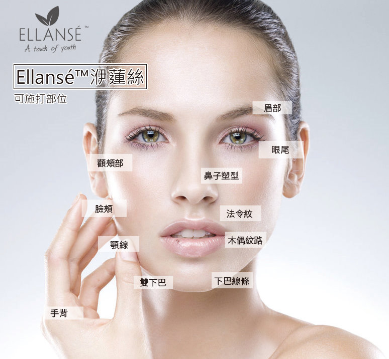 除去不能施打於嘴唇、眼皮等處,Ellanse可以施打於全臉做充分的拉提、填充: