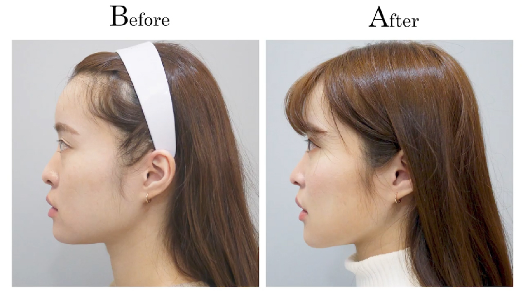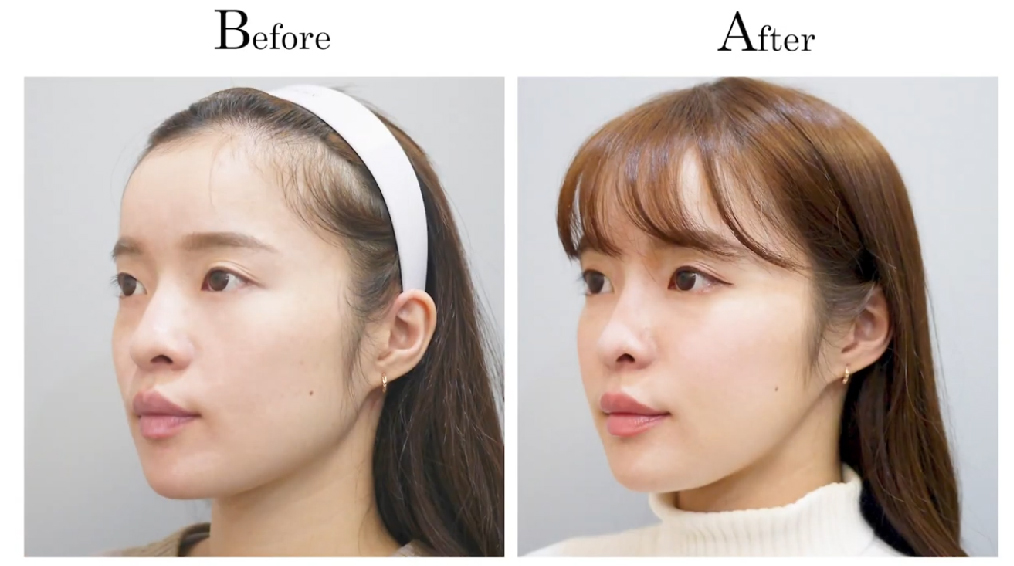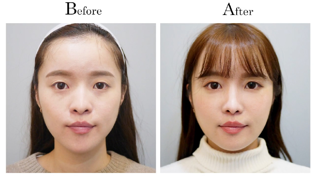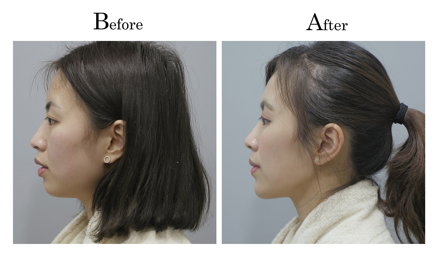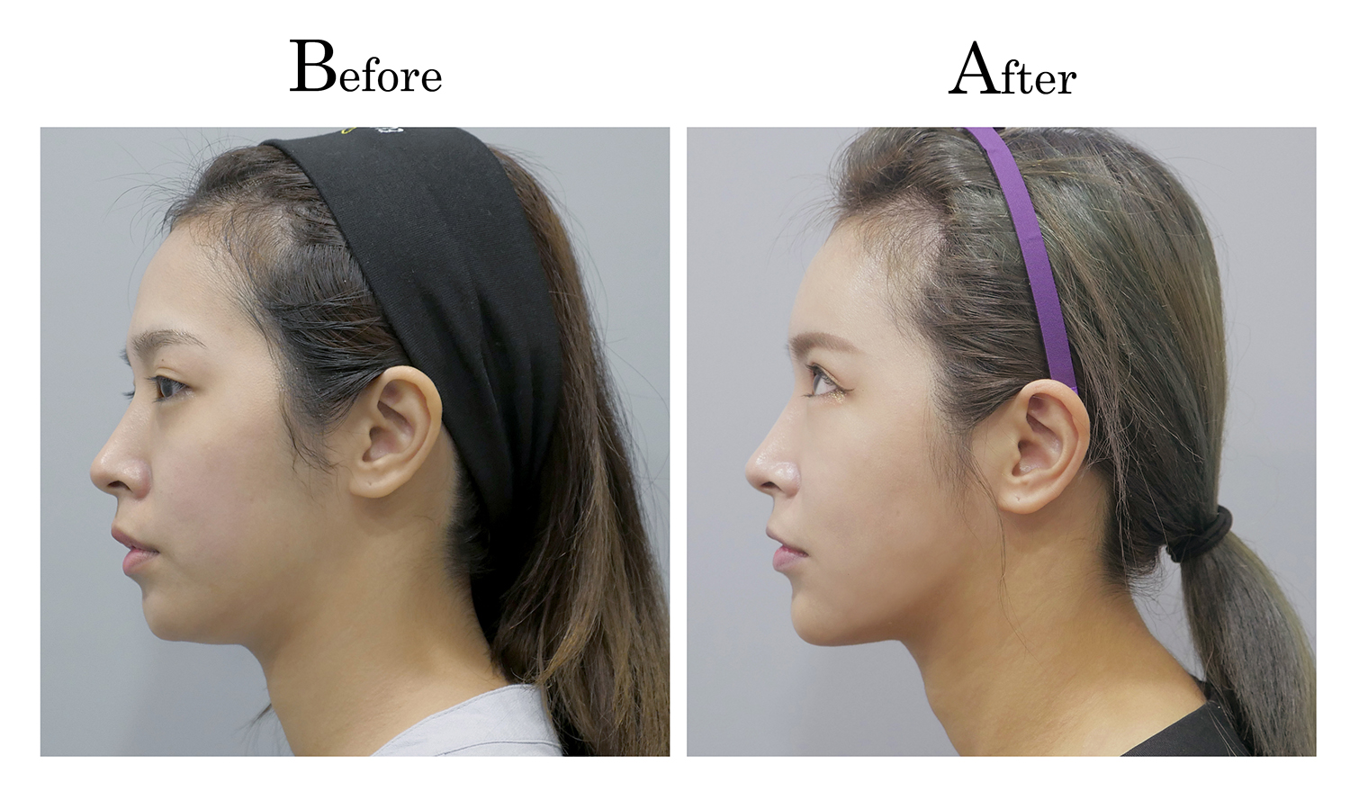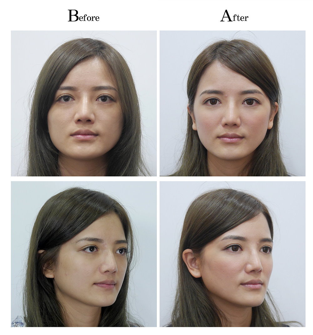 此案例咀嚼肌較為發達,施打肉毒桿菌將其肌肉縮小已達改善臉部下臉較寬的問題,另外臉型因為下巴較短的關係,看起來比較圓,在下巴處施打玻尿酸塑型臉部看起來變得比較長,另外,病患在蘋果肌淚溝交界處有些凹陷,填補洢蓮絲植入劑將蘋果肌填充,透過洢蓮絲內含的聚左旋乳酸刺激膠原蛋白增生,達到長久穩定的效果。