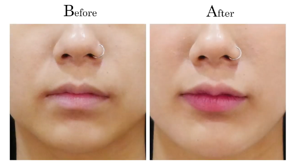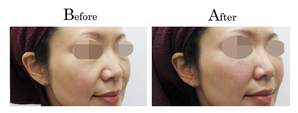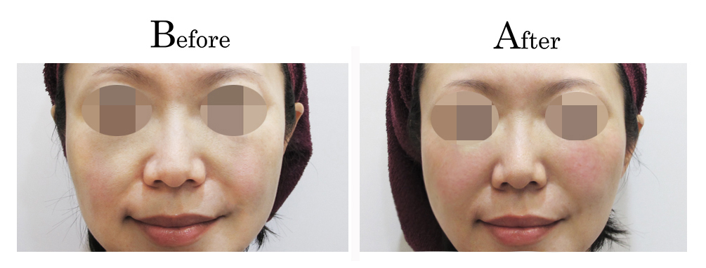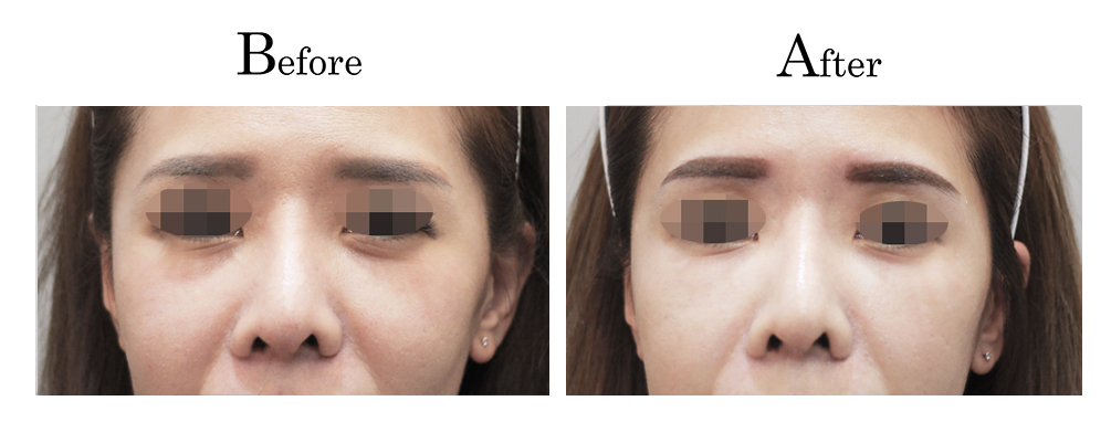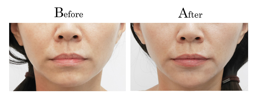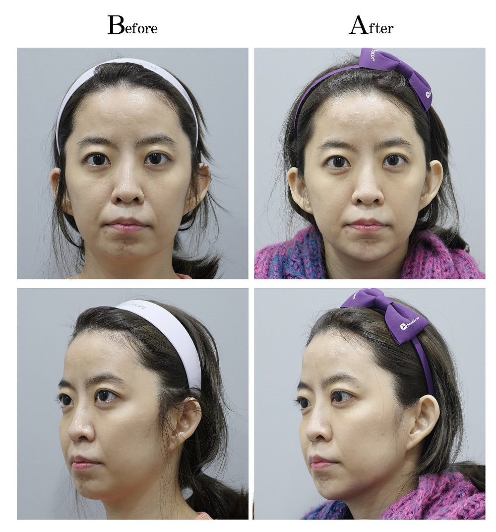 此案例咀嚼肌較為發達,施打肉毒桿菌將其肌肉縮小已達改善臉部下臉較寬的問題,另外臉型因為下巴較短的關係,看起來比較圓,在下巴處施打玻尿酸塑型臉部看起來變得比較長,另外,病患在蘋果肌淚溝交界處有些凹陷,填補洢蓮絲植入劑將蘋果肌填充,透過洢蓮絲內含的聚左旋乳酸刺激膠原蛋白增生,達到長久穩定的效果。