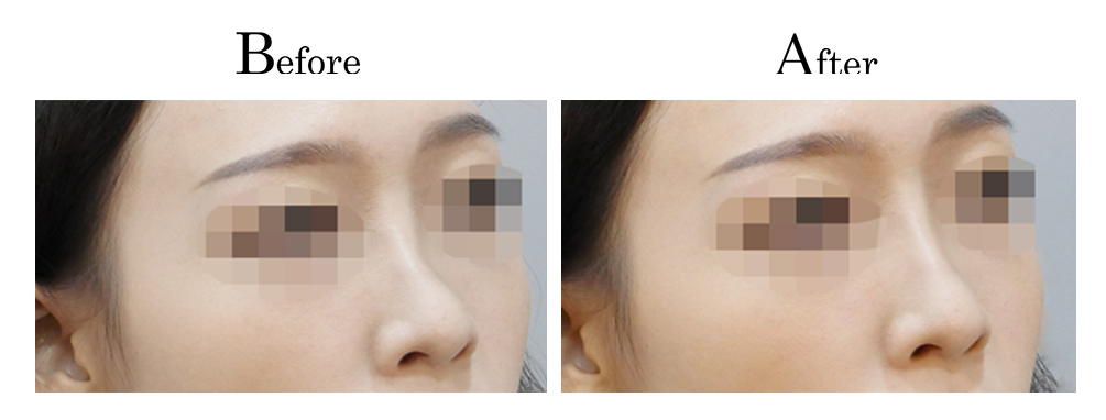 很多人覺得自己鼻子比較塌,通常會有山根低平的狀況,如果因為預算的考量或是對隆鼻手術放假體進入體內會踟躕猶豫,可以先用微整形玻尿酸或晶亮瓷填充劑隆鼻看看效果,簡單快速且沒什麼恢復期,可以先當作一個參考。