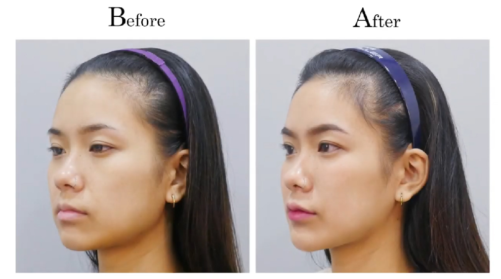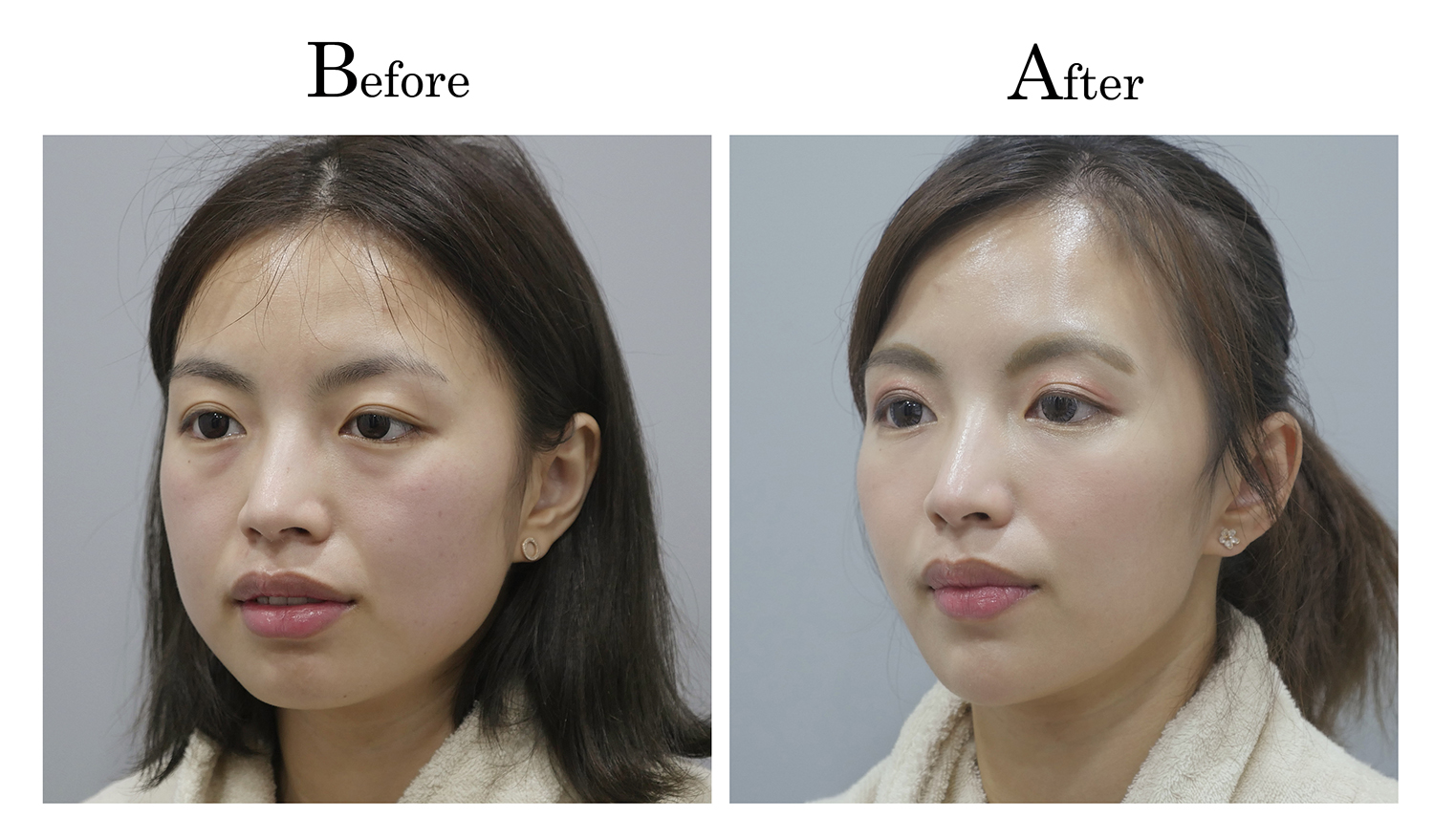 玻尿酸隆鼻跟墊下巴可以使整體輪廓更深刻,下巴往下往前延長拉尖,使得整個臉形比例更好;而臉頰與額頭的填補使用了舒顏萃,舒顏萃的效果是漸進的,也能刺激皮下新生膠原蛋白讓之後的膚質與填充效果更好,因此會有些人選擇以舒顏萃做填充。