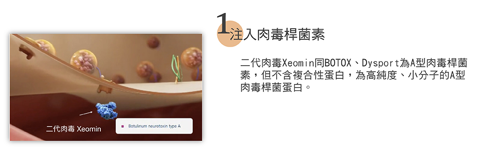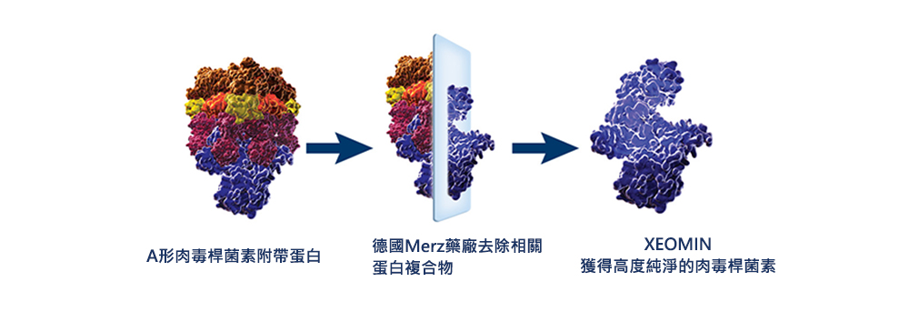 Xeomin是由德國Merz公司生產出品,2011年獲美國食品與和BOTOX、Dysport同為A型肉毒桿菌素,但有所不同的是:Xeomin並不像BOTOX、Dysport含有複合蛋白分子去攜帶A型肉毒桿菌,而是經過提煉、純化的肉毒桿菌素。