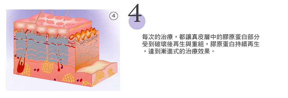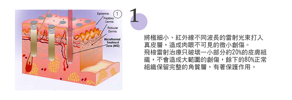 另外,它能刺激真皮層深層膠原蛋白再生與重組的功效,改善膚質、減少細紋與細緻毛孔,還可以改善淺層色素斑(如雀斑、曬斑)。飛梭雷射通常需要數次,以達到最佳效果。每次治療時間尖閣4至8周,視個人膚質情況與需求而定,治療強度也會有所調整。