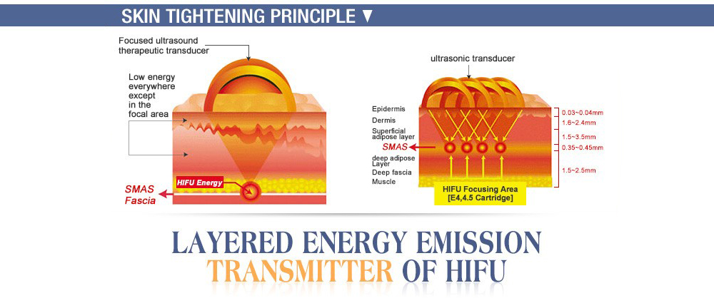 音波拉提利用高能量聚焦式超音波技術,將熱能傳遞到侵入式手術才能觸及的肌肉筋膜層,使組織吸收熱能,並刺激膠原蛋白增生,藉此達到肌膚緊實、拉提的作用。屬於非侵入性治療,因此無傷口、無須恢復期。一般的電波雷射(如CPT電波拉皮)手術,幾乎只能作用於肌膚底層與皮下脂肪區,但音波拉皮可深入人體4.5mm,將熱能直達SMAS筋膜層(亦是傳統拉皮手術懸吊之處),所以效果持續,維持的時間也相對要長。
