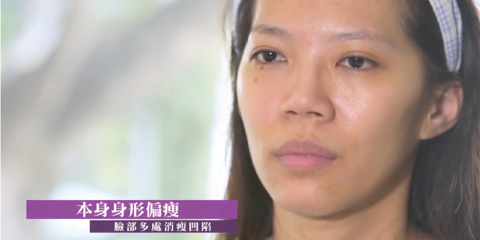 她提及到:「她認為自己本身的體態偏瘦,不容易長肉,臉部和太陽穴額頭的部分都因為太過消瘦而導致凹陷非常嚴重。」她自己照鏡子看起來就覺得很憔悴不上妝也容易讓人感覺沒有精神,同事家人看到她都會覺得她是不是又變瘦了感覺身體很瘦弱,或者會說是不是都沒有在吃飯。