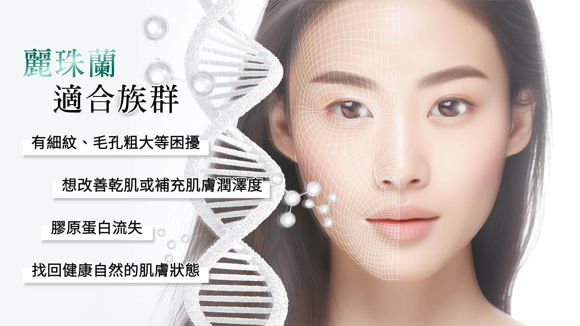 搭配微針電波將能量傳遞至0.5-8mm深度,再將麗珠蘭應用於電波治療後的修復階段,適合需要改善廣泛膚質問題及全面緊緻拉提的族群,可透過修復微針產生的微損傷,促進皮膚重建,增強膠原蛋白與彈性蛋白的生成,改善細紋與鬆弛。