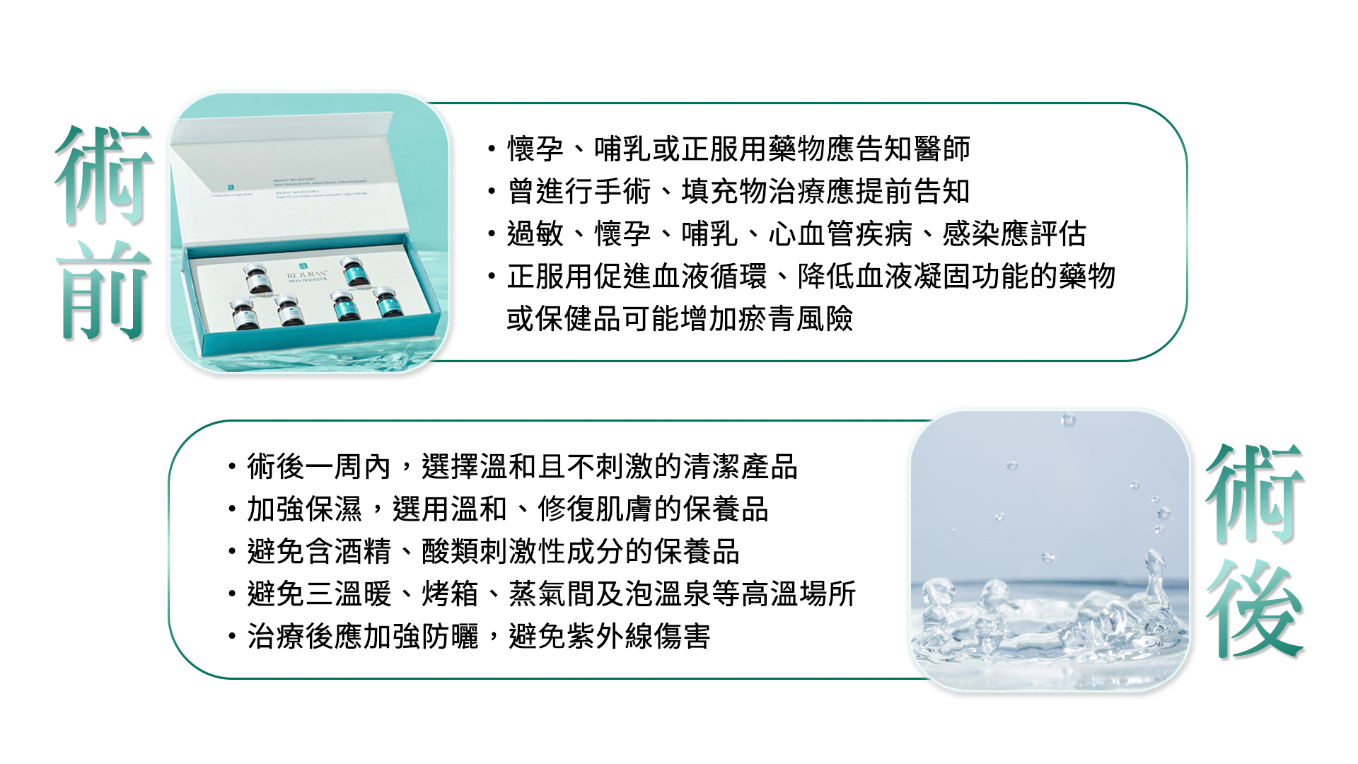 3.若您有過敏體質、懷孕、哺乳或心血管疾病等重大疾病、全身性或注射部位感染,或近期使用過光敏感藥物,應經醫師謹慎評估。