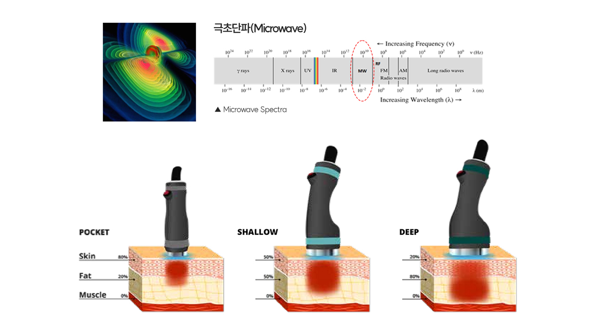 超微波(2.45GHz):高達94%能量直達脂肪層,僅有6%作用於真皮層,效果更精準、深層且高效。