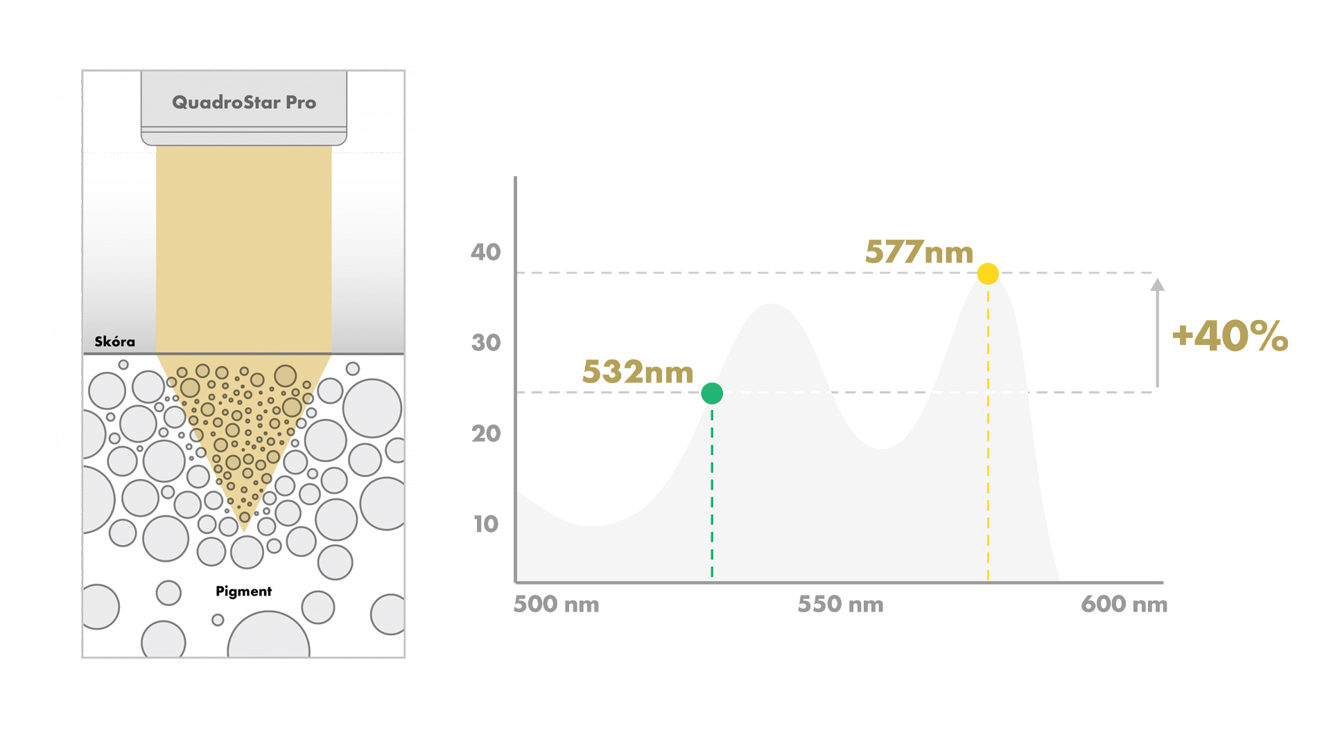 琥珀雷射最為人稱道的,就是其 577nm波長。此波長被稱為「黃金波長」,相較於傳統的585nm染料雷射,對血紅素(Hemoglobin)的吸收更高、更穩定,能有效針對表淺層的微血管病灶進行熱能凝結與收縮。