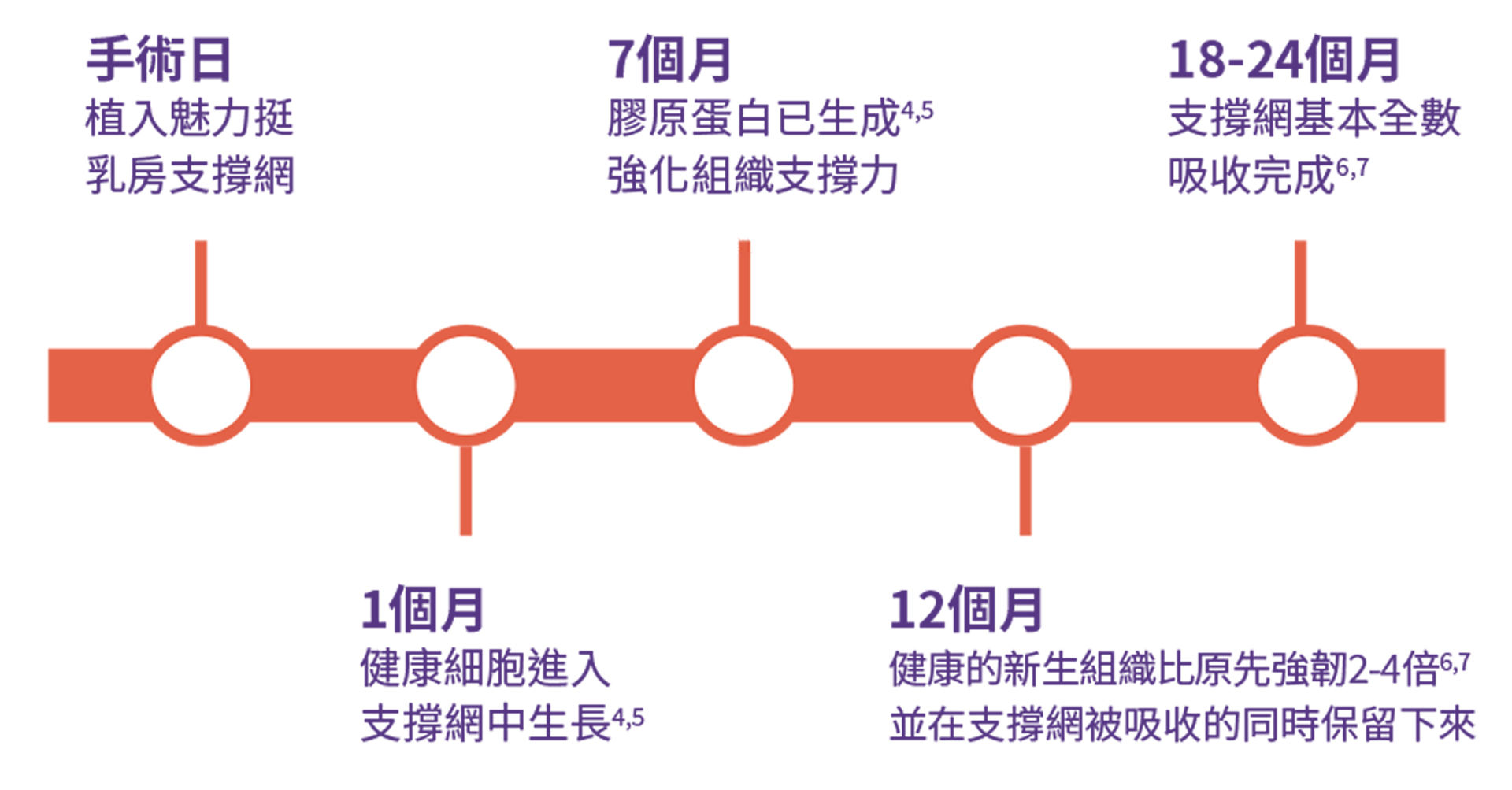 在臨床研究中已被證實,魅力挺可以在植入後提供乳房立即性支撐,促進新的膠原蛋白生成並增強組織強度,維持乳房整形手術後所達到的乳房形態和位置,並可在 18-24 個月內被人體自主吸收後提供長期支撐力。