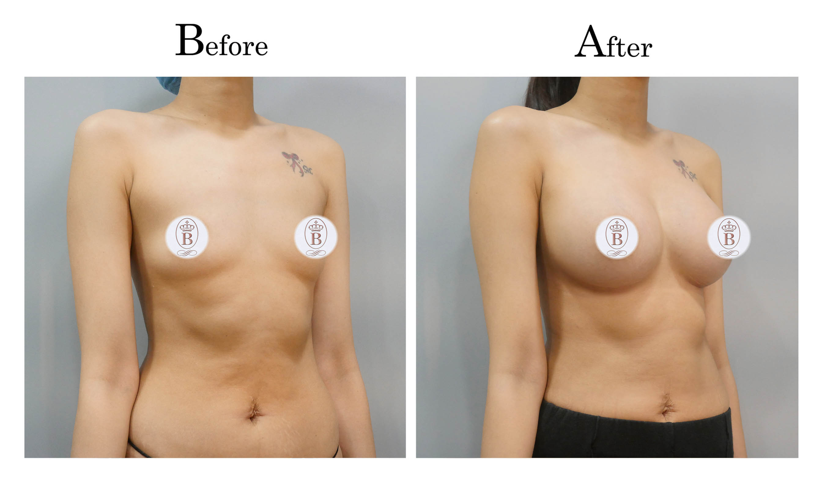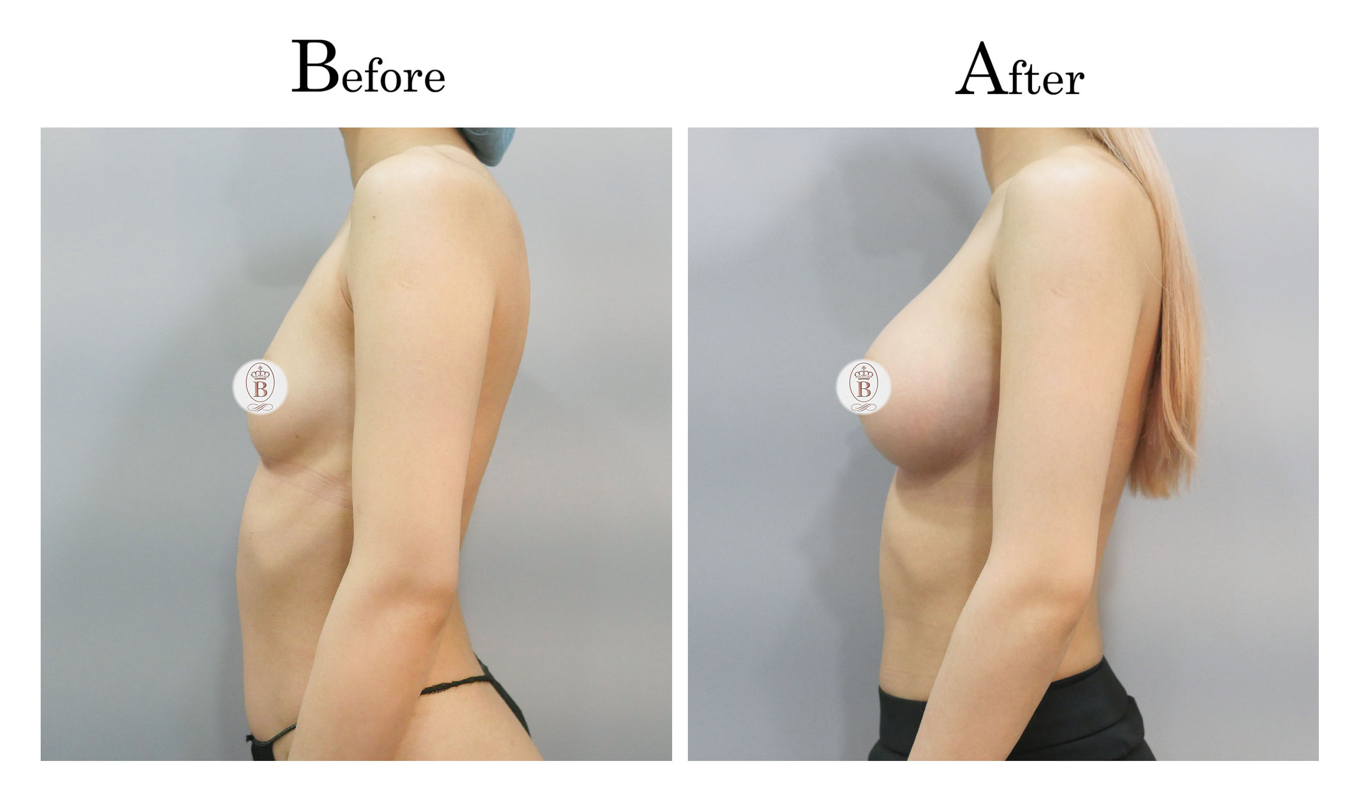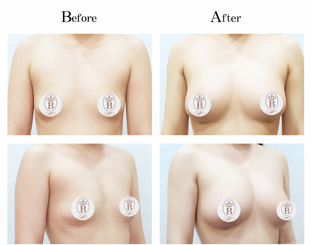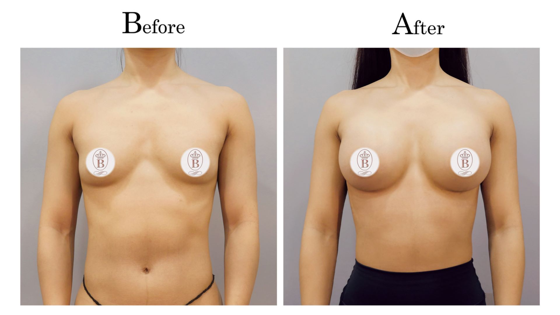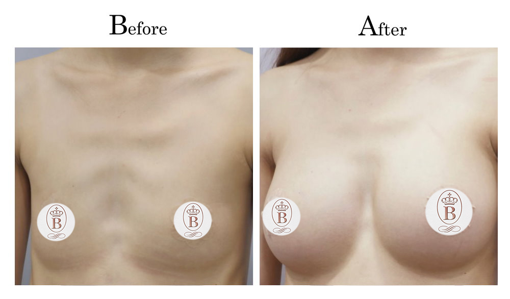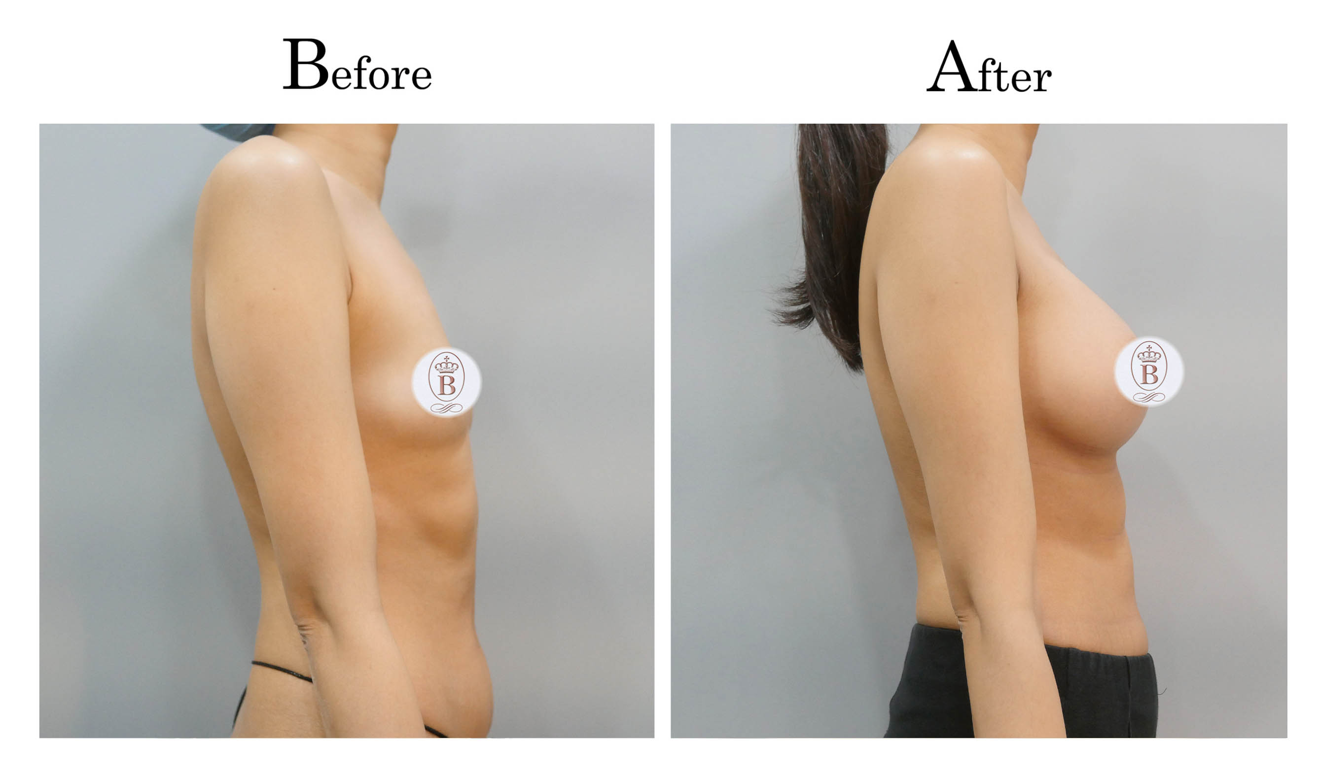 此案例的上胸與胸側較沒有肉、扁平甚至是凹陷,胸型反而有下垂的錯覺,但皮膚下有足夠的空間注射多量脂肪,因此醫師抽取腰腹的健康脂肪,將之移植至上胸、胸側原本不足之處,即此由B躍升至D罩杯,另外由於用的是自體脂肪,沒有異體物排斥的問題,只待穩定過後存活下來的脂肪即能永久存活,相當適合排斥異體植入或擔心莢膜攣縮的受術者。