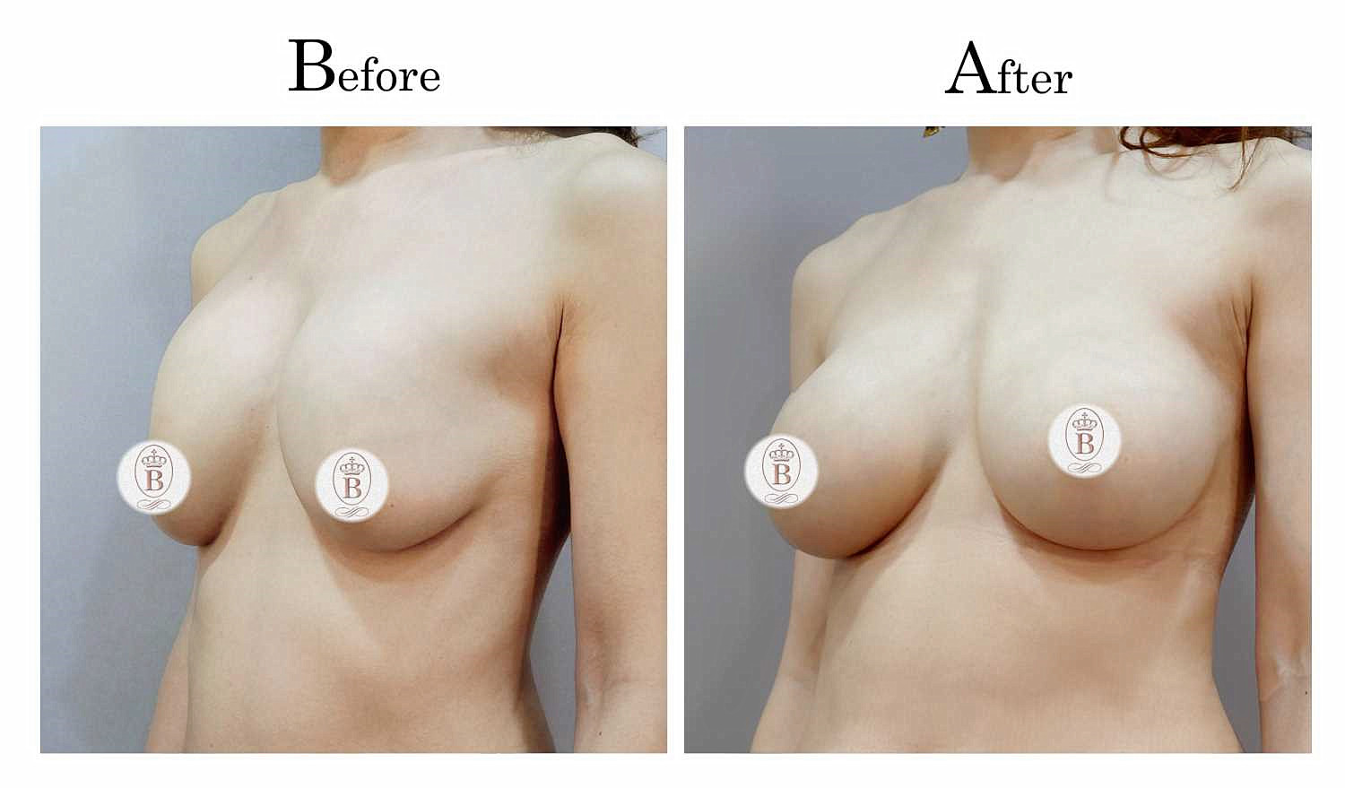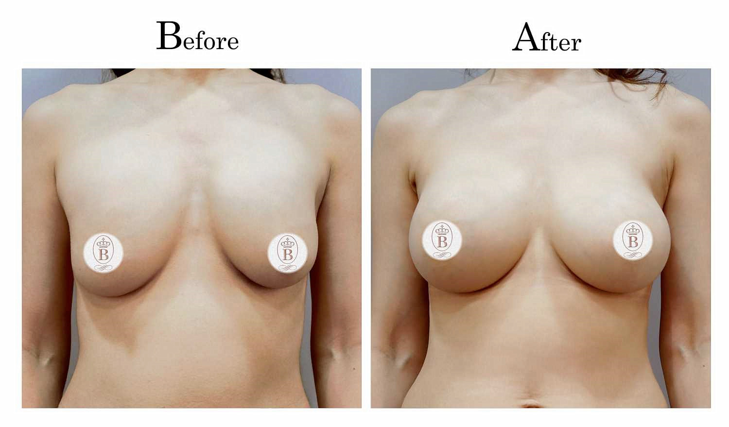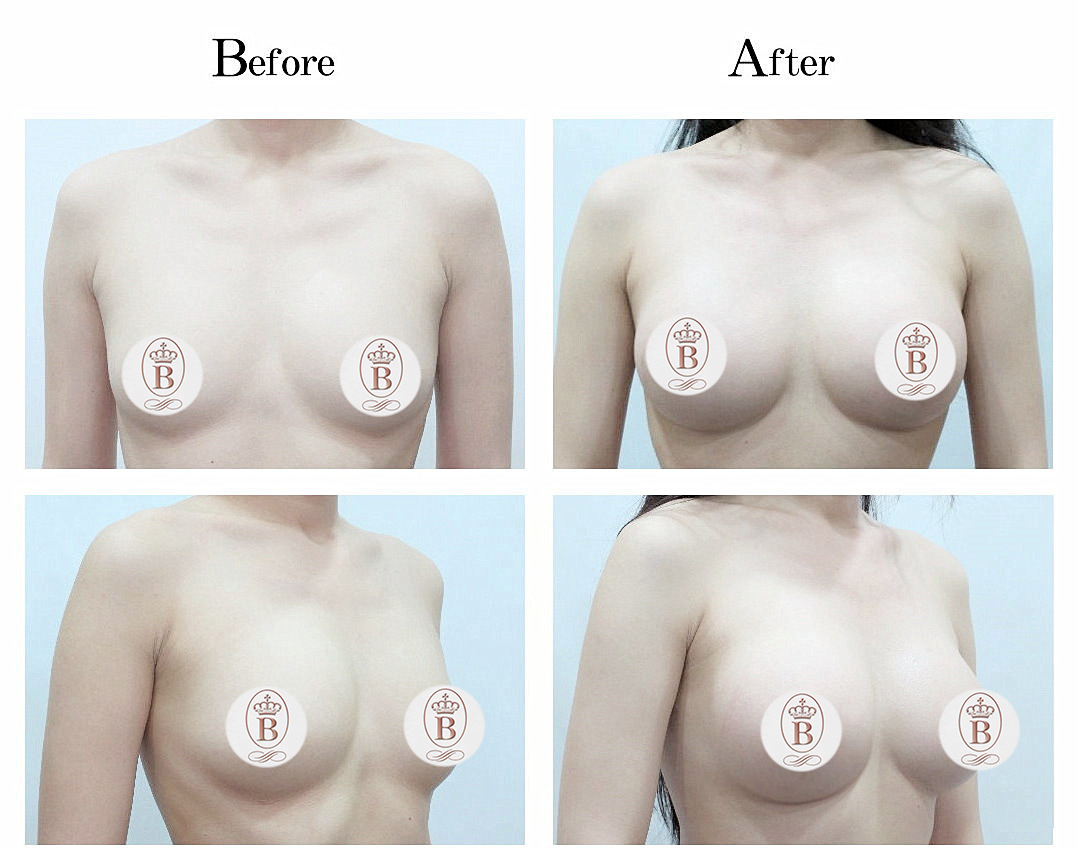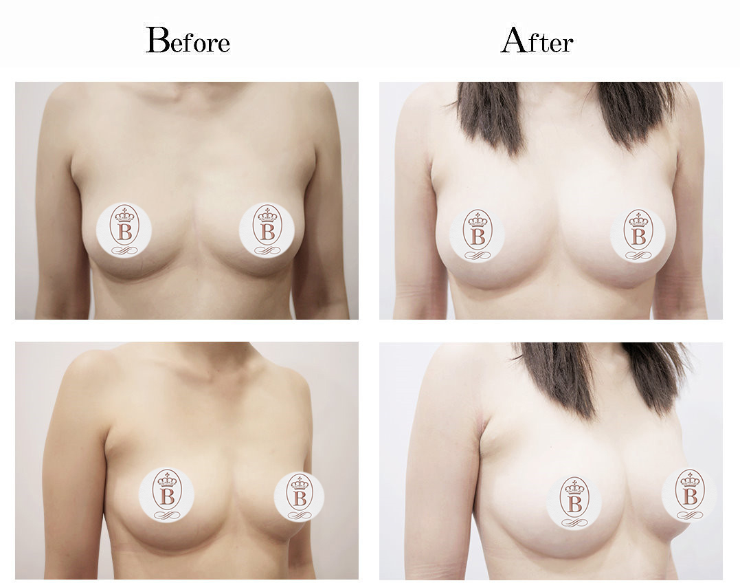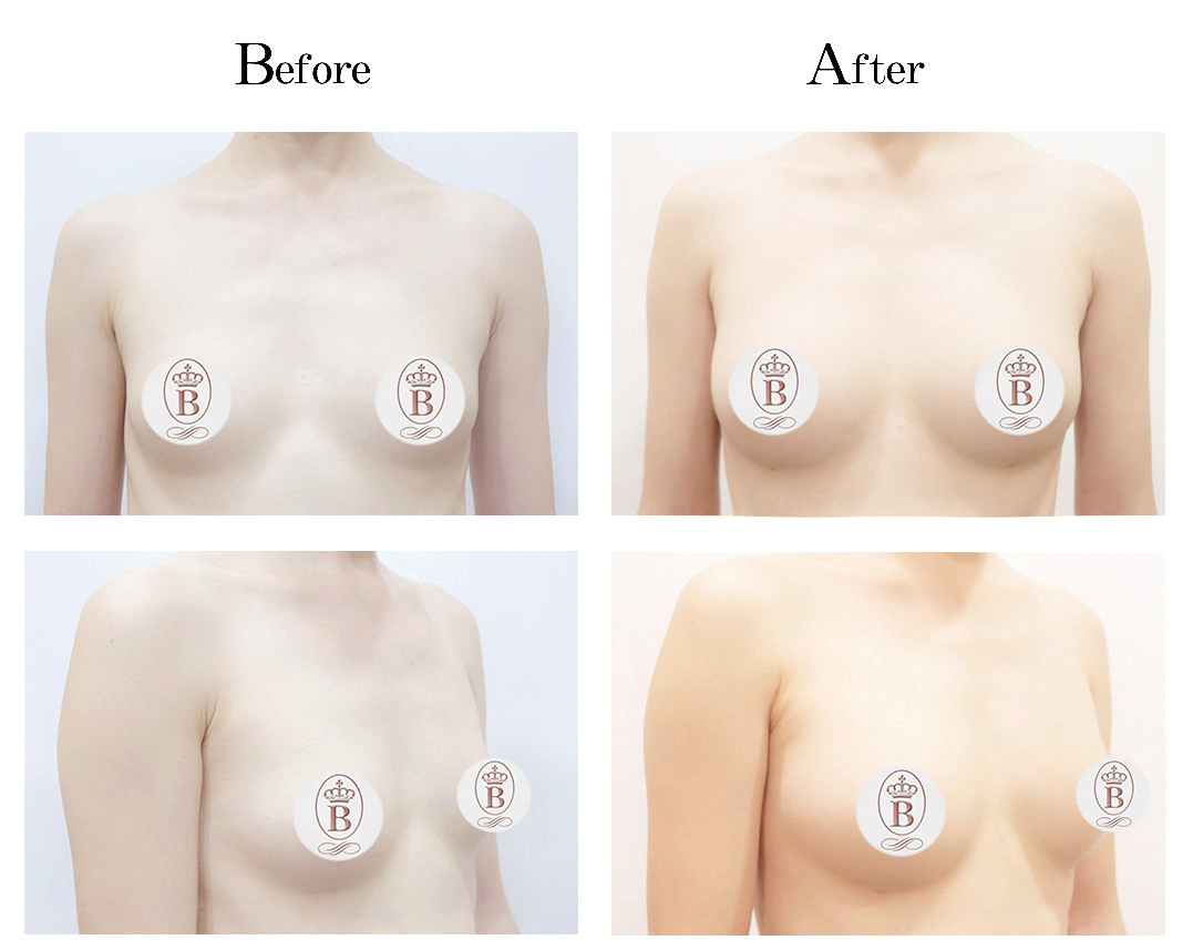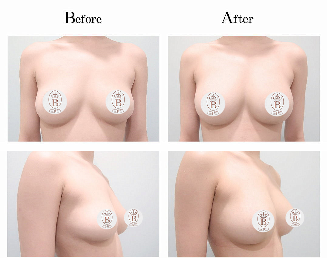 此案例的上胸與胸側較沒有肉、扁平甚至是凹陷,胸型反而有下垂的錯覺,但皮膚下有足夠的空間注射多量脂肪,因此醫師抽取腰腹的健康脂肪,將之移植至上胸、胸側原本不足之處,即此由B躍升至D罩杯,另外由於用的是自體脂肪,沒有異體物排斥的問題,只待穩定過後存活下來的脂肪即能永久存活,相當適合排斥異體植入或擔心莢膜攣縮的受術者。