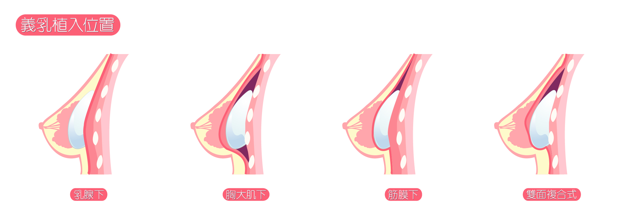 | 適合對象 | X | 上胸不夠飽滿,希望穿胸罩可以擠到上胸爆乳的效果 | 上胸緣順不需要爆乳,下胸飽滿挺立 | 產後萎縮或本身條件不錯希望增加1-2罩杯與局部胸型調整 | 胸型平坦,或上胸偏瘦,希望胸部渾圓飽滿、堅挺者。 |