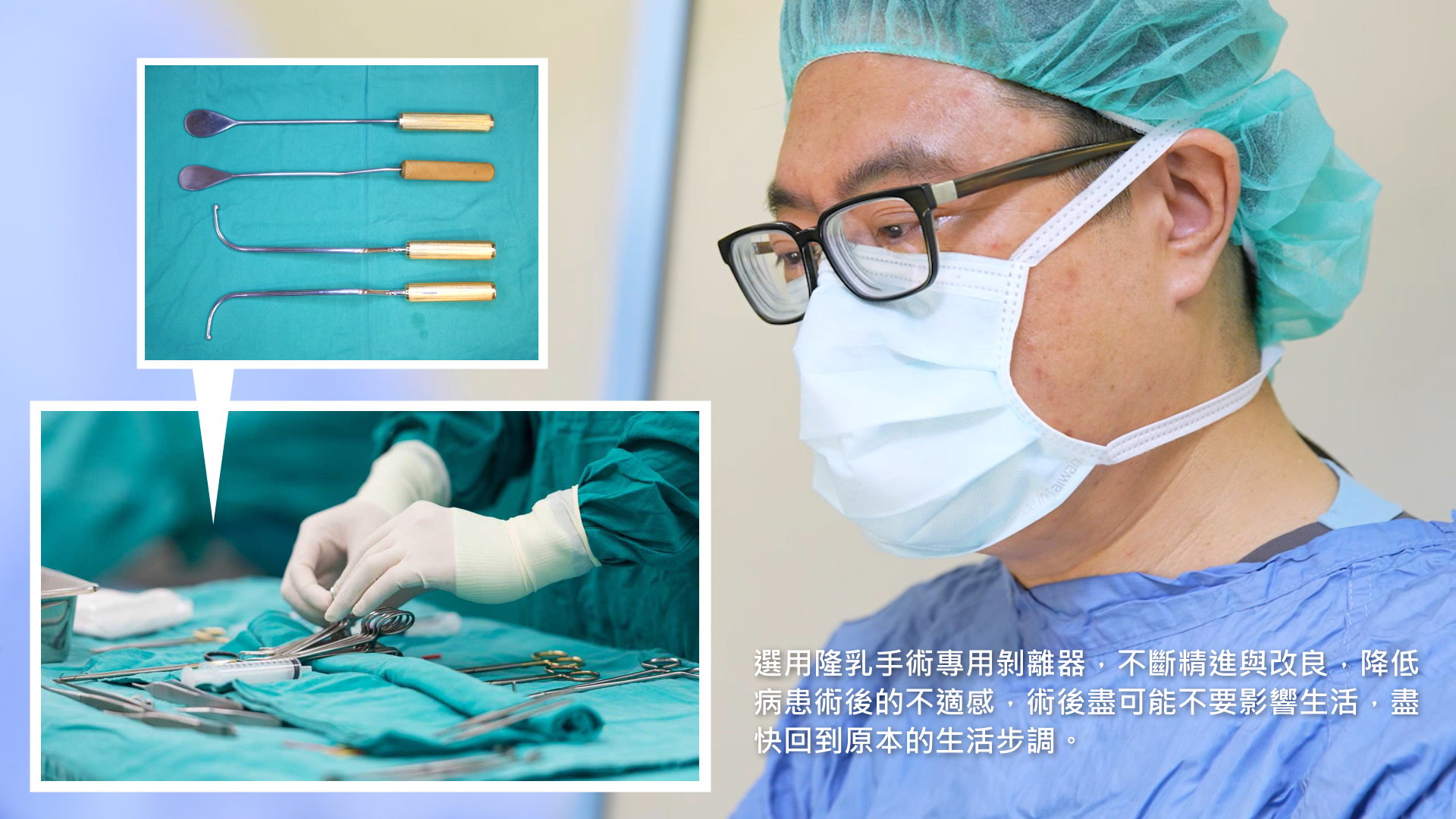 選用隆乳手術專用剝離器,不斷精進與改良,降低病患術後的不適感,術後盡可能不要影響生活,盡快回到原本的生活步調。