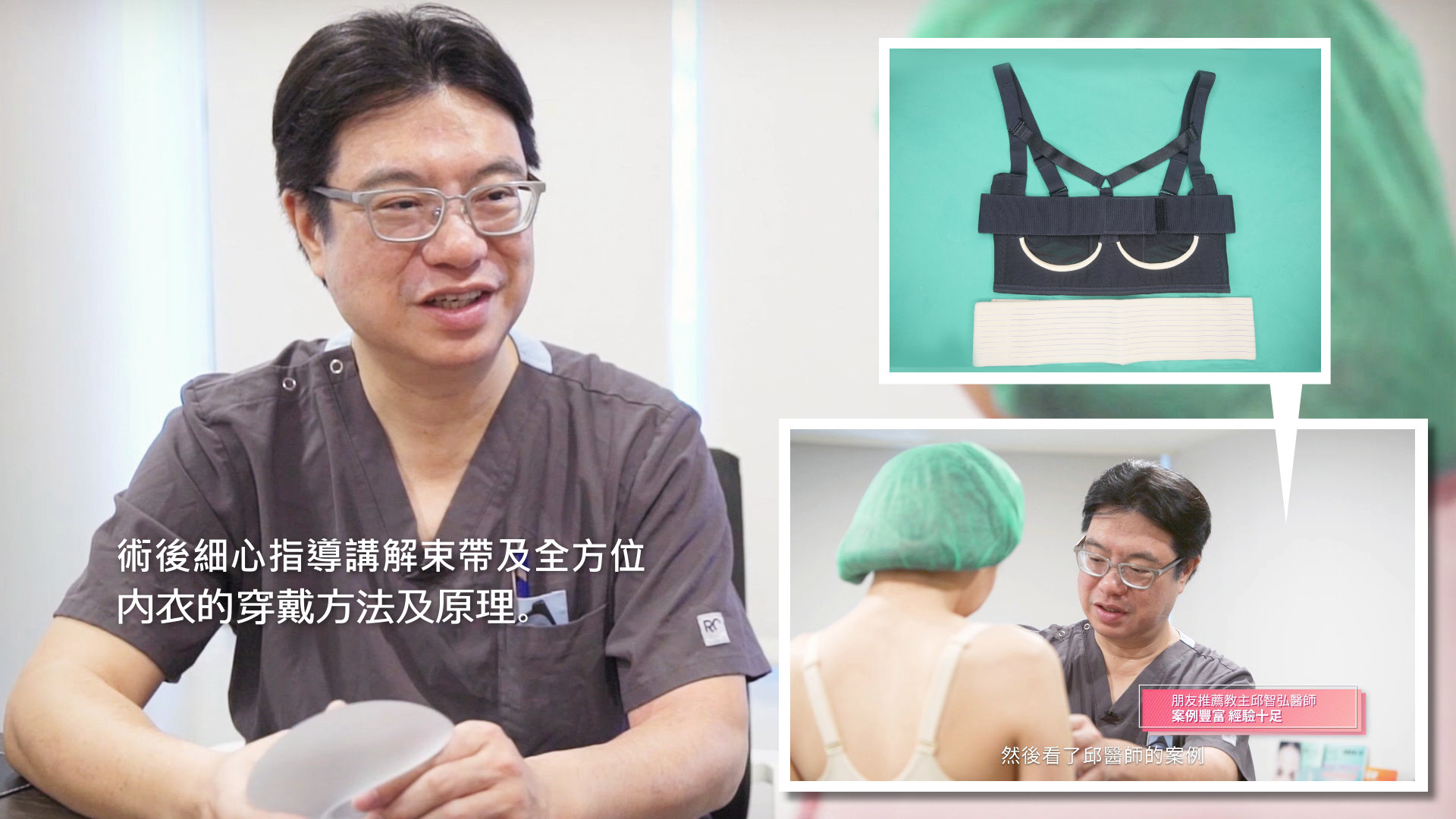 ▲術後細心指導講解束帶及全方位?衣的的穿戴方法及原理。